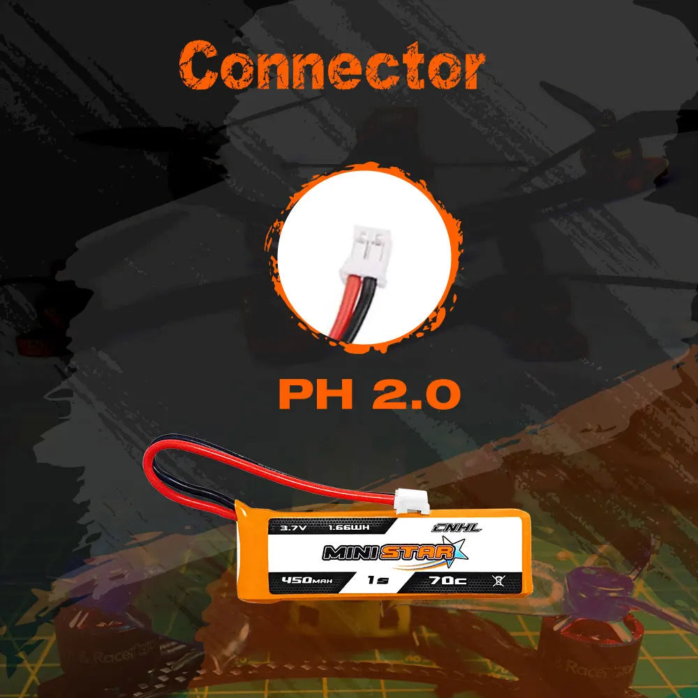 8PCS CNHL MiniStar HV 450mAh 3.8V 1S 70C Lipo Battery With PH 2.0 Plug for RC FPV Drone Mini Quadcopter Emax TinyHawk Happymo