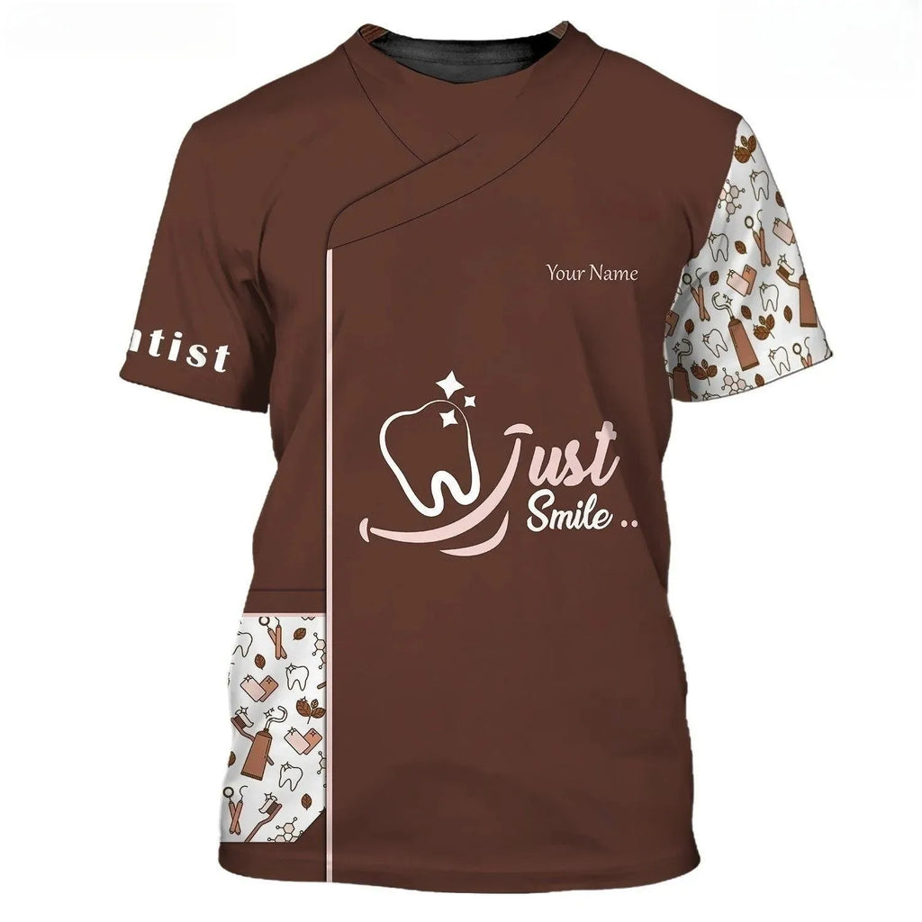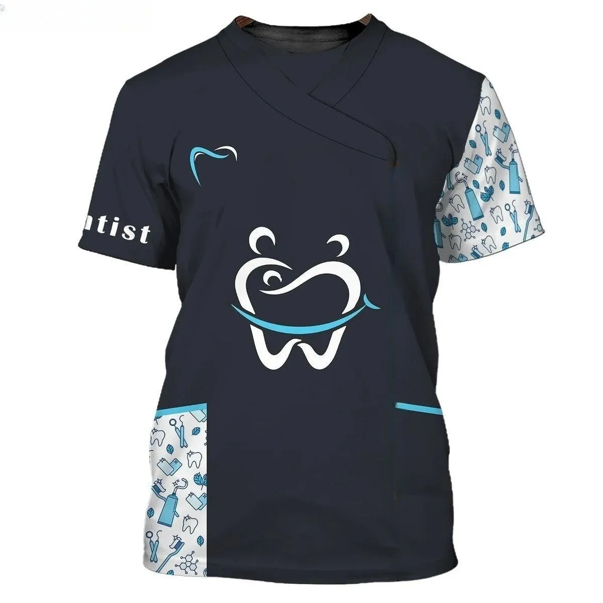 Dentist Work Dress Fun 3D Simulation Printed Men's And Women's Cosplay Hip Hop Personality Crewneck Short Sleeve Street T-shirt