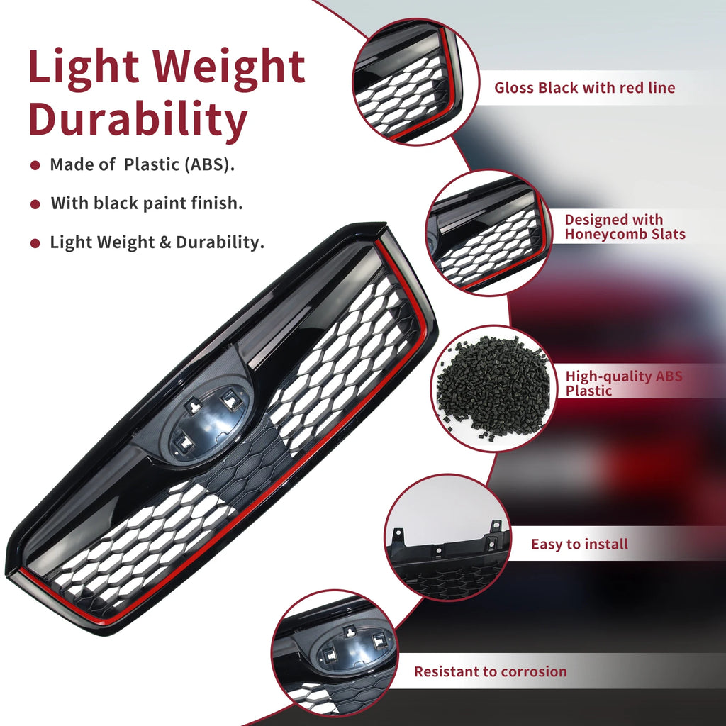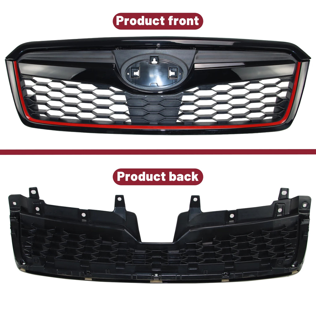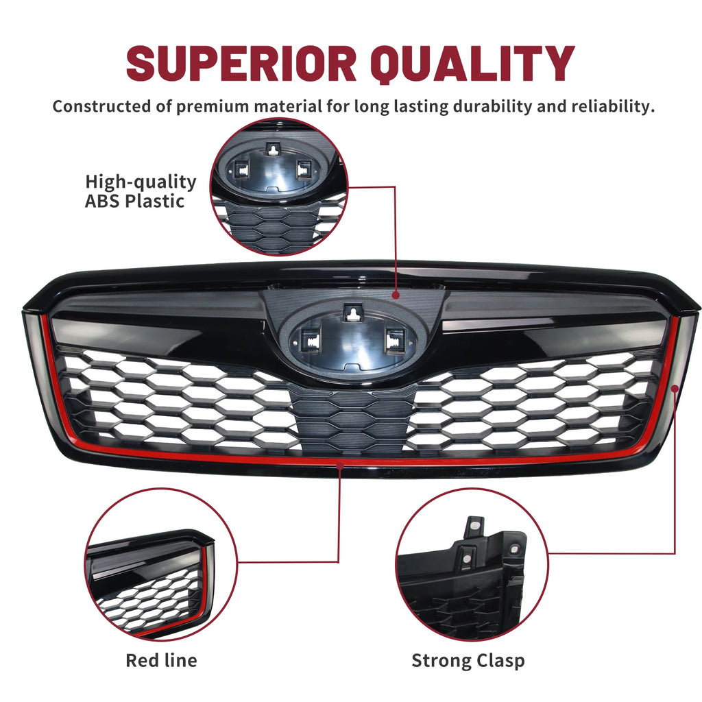 Front Grill for 2014-2018 Subaru Forester Gloss Black with Red Line
