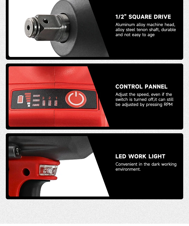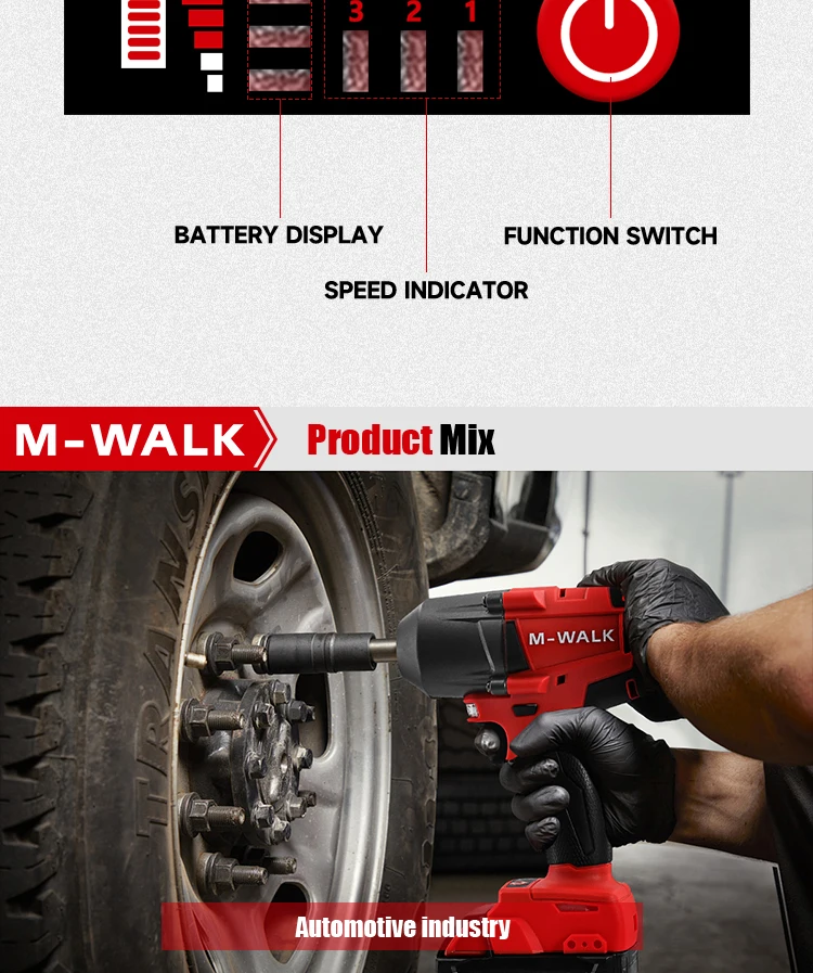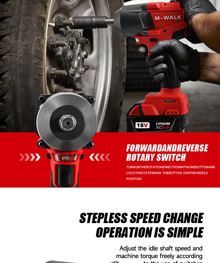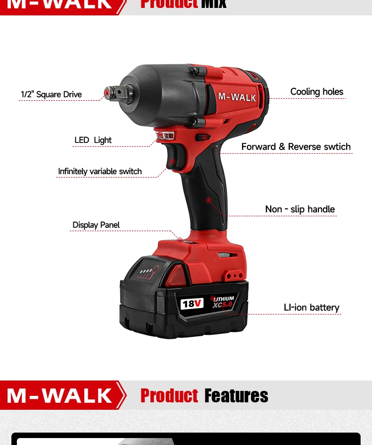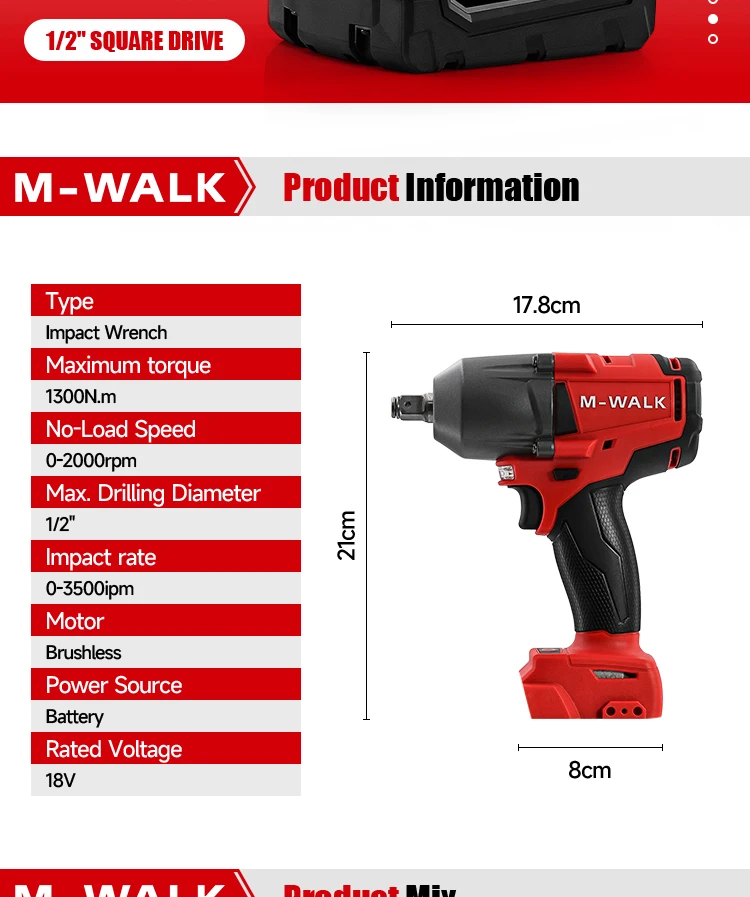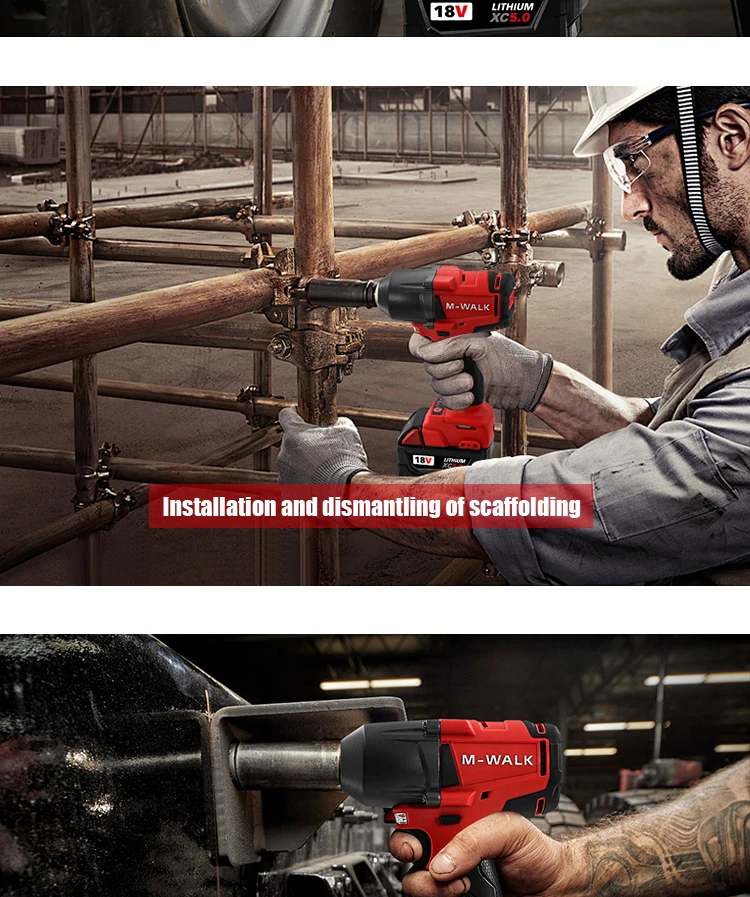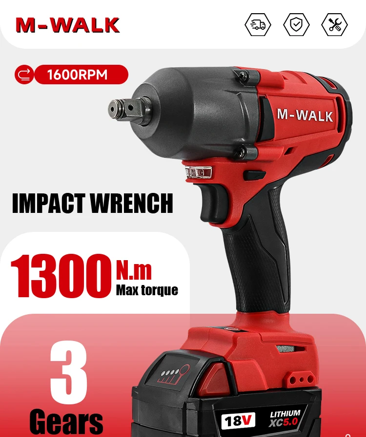 M-WALK Tool 1300N.M Brushless Impact Wrench Cordless Electric Wrench 1/2 in Screwdriver Power Tool For Milwaukee 18V Battery Pin