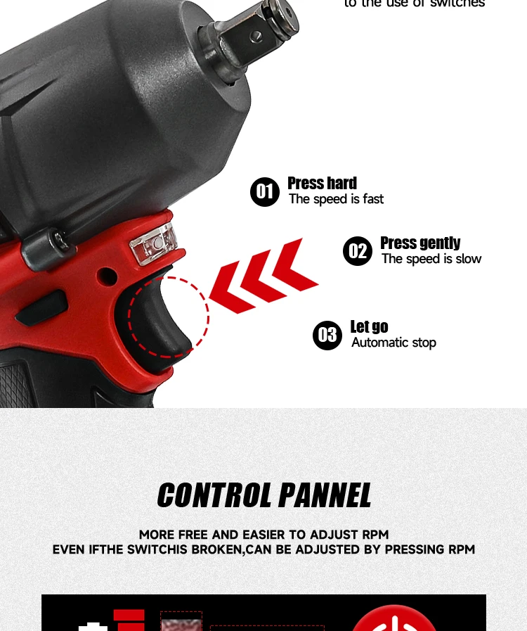 -The brushless motor does not generate sparks when it is working, and the motor does not wear.