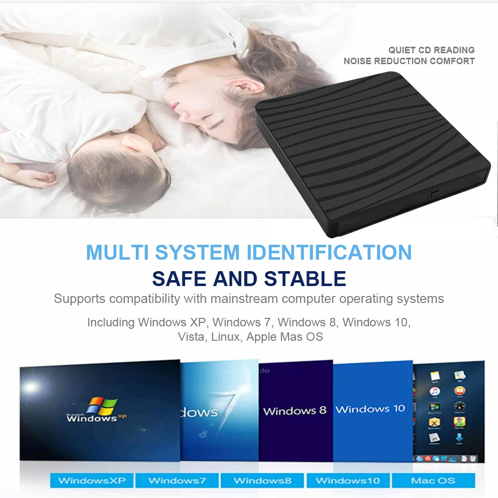 3. Versatile Compatibility: This portable CD DVD burner can be used with any laptop or desktop, making it highly versatile. It ensures compatibility with various operating systems and supports both DOS boot and system recovery. Whether you need to install software, play movies, or create backups, this drive has you covered.