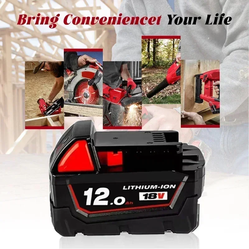 ⭐18V, 12800mAh For Milwaukee M18 Power Tool Battery, Charger, BR, XC, M18B5, 48-11-1860, Built-in 18650 Battery