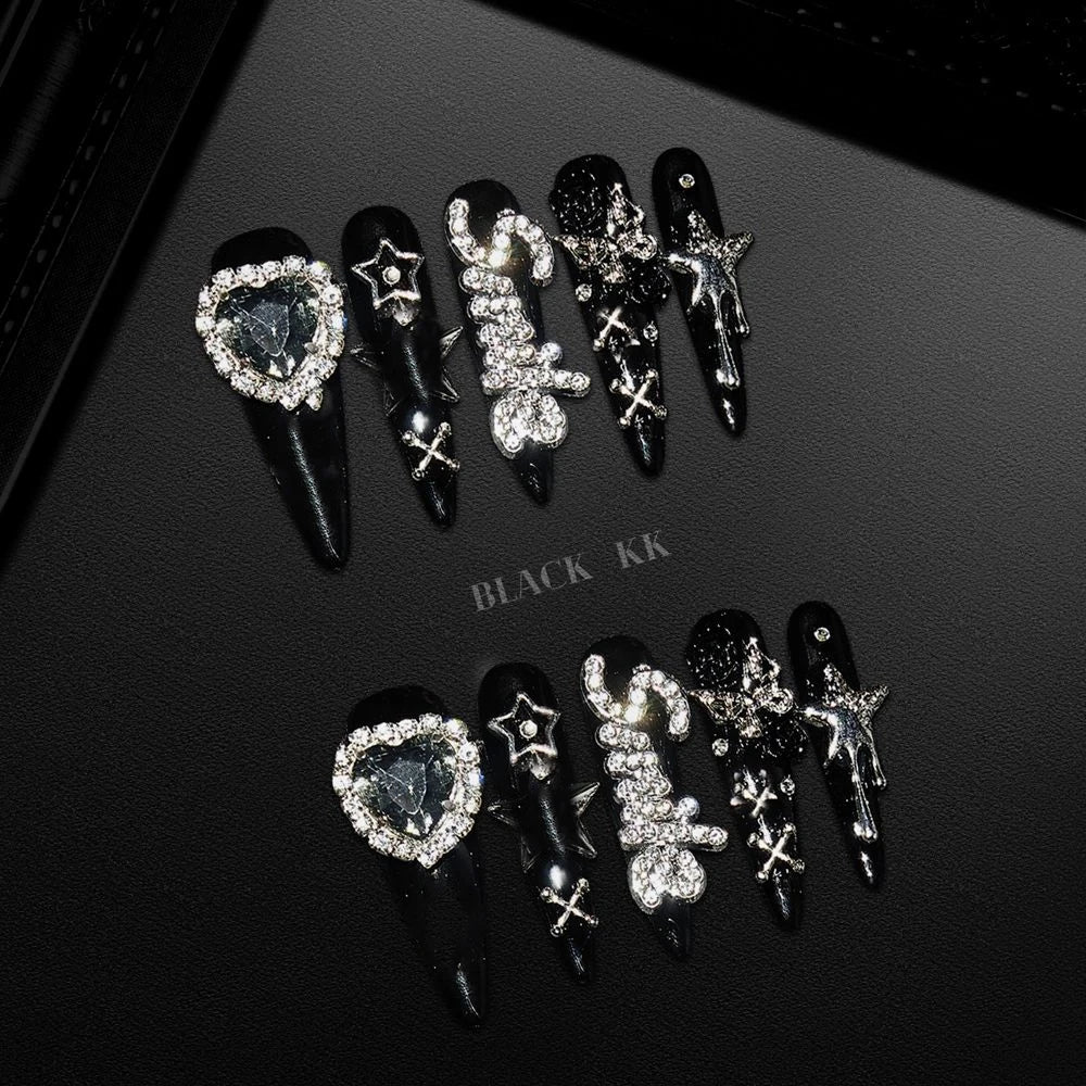 10Pcs Y2K Spicy Girl Long Coffin Handmade Press On Nails 3D Sanrio Hello Kitty Bear Pearl Diamond Pentagram Wearable False Nail
