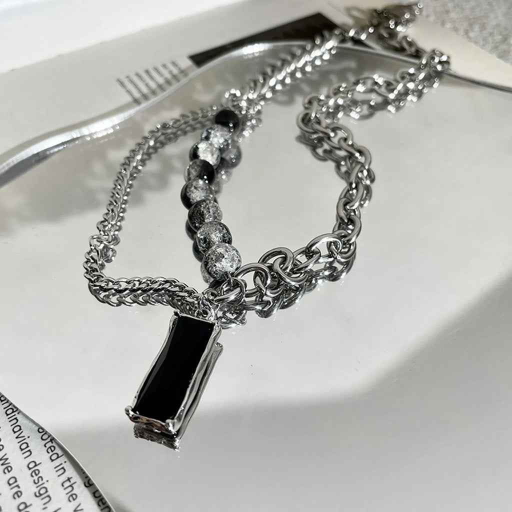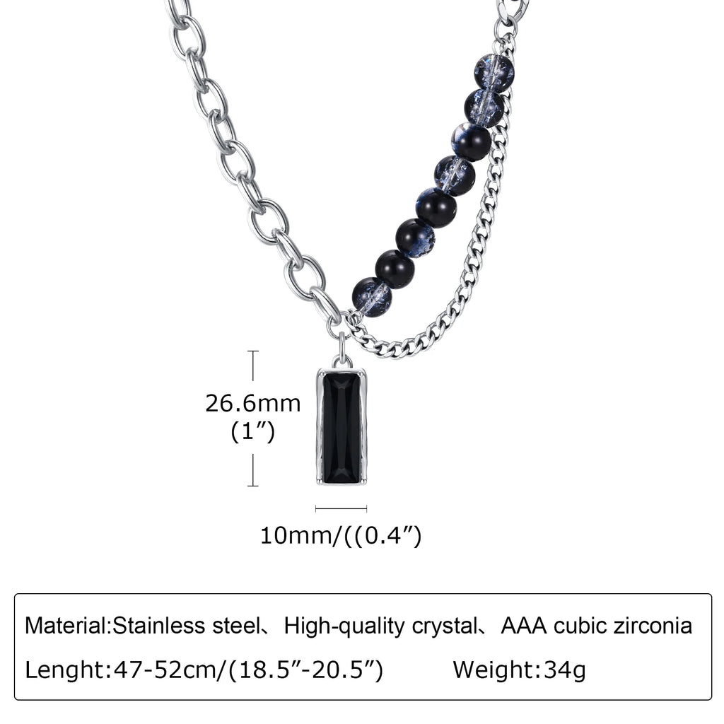 Men Stylish Black Stone Choker Necklaces,Chic Double Layers Chain Collar,Valentine's Father's Day Birthday Party Gift