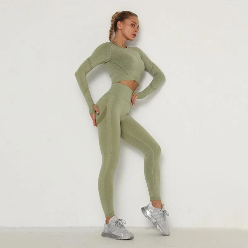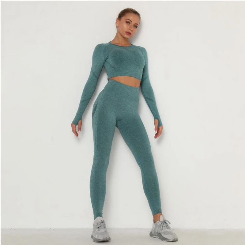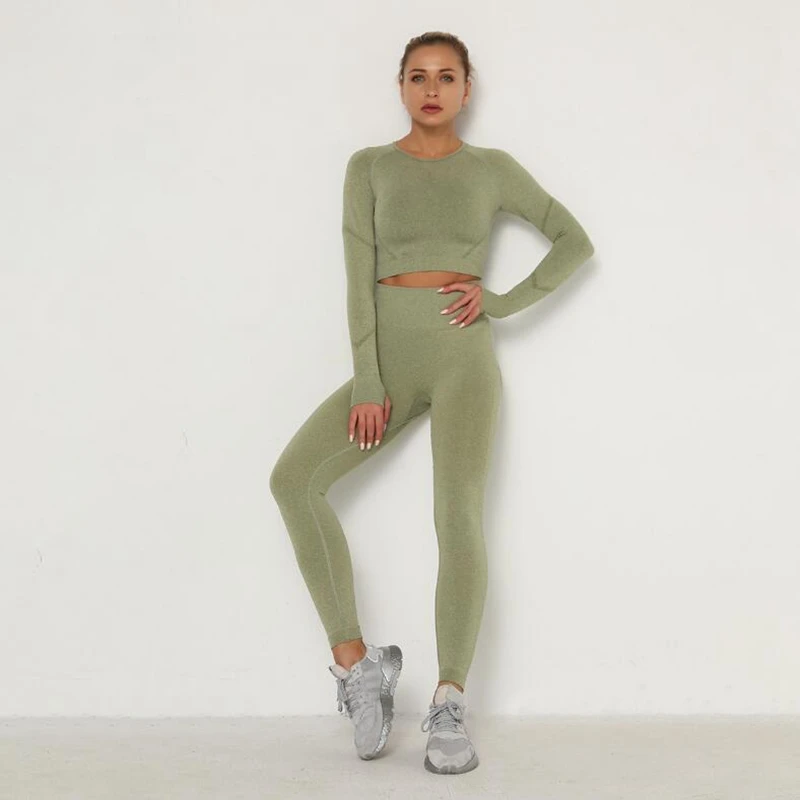 Style: women seamless leggings yoga pants and shirt set