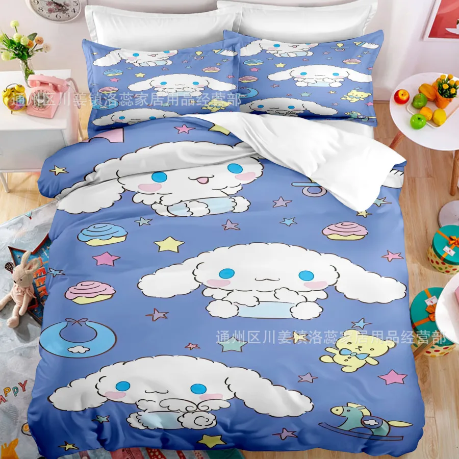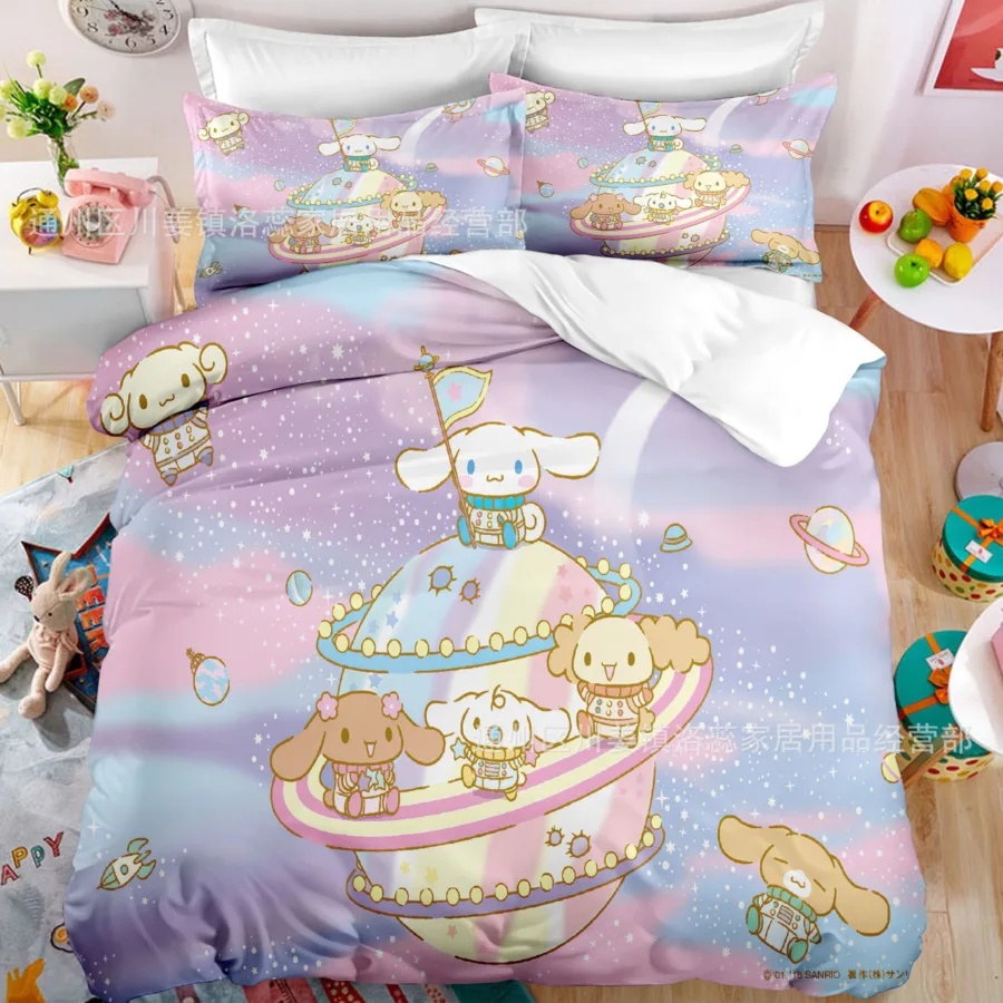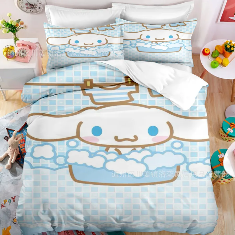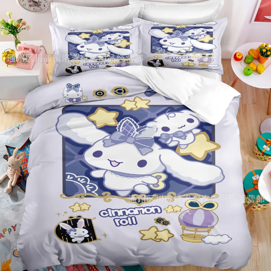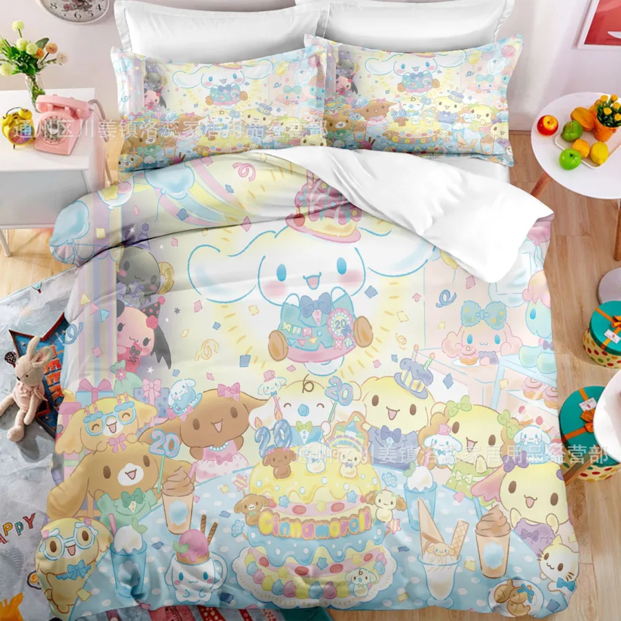 Cartoon Sanrio Duvet Cover Set Kawaii Cinnamoroll Quilt Cover Pillowcase Set Kids Girls Comfortable Bed Set Full Twin King Size