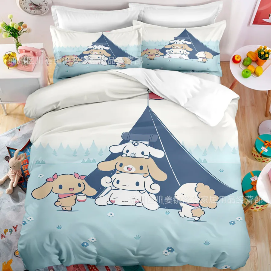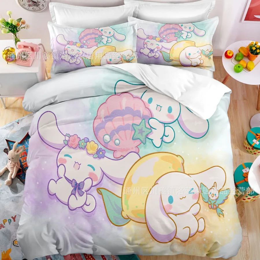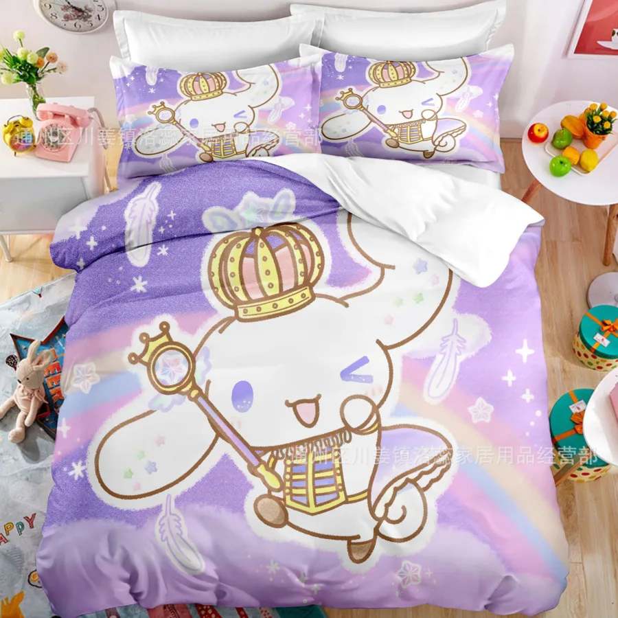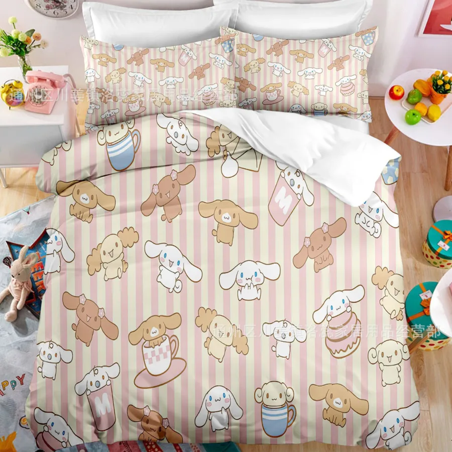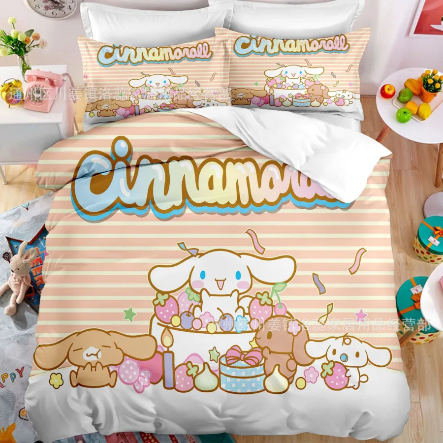 Cartoon Sanrio Duvet Cover Set Kawaii Cinnamoroll Quilt Cover Pillowcase Set Kids Girls Comfortable Bed Set Full Twin King Size