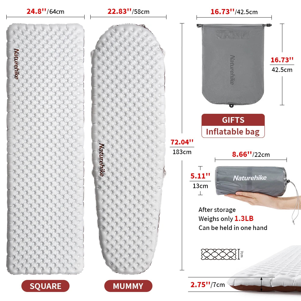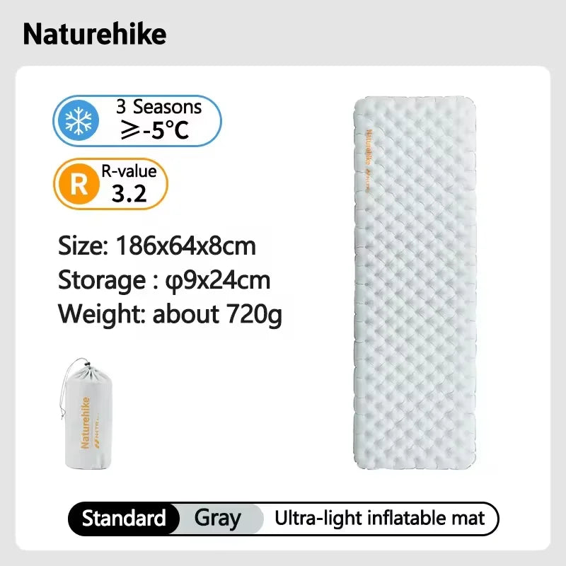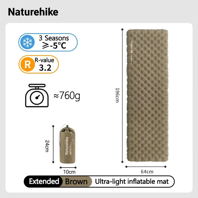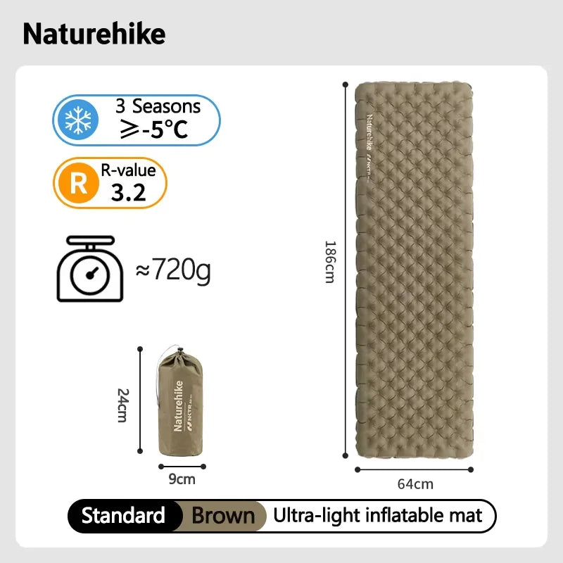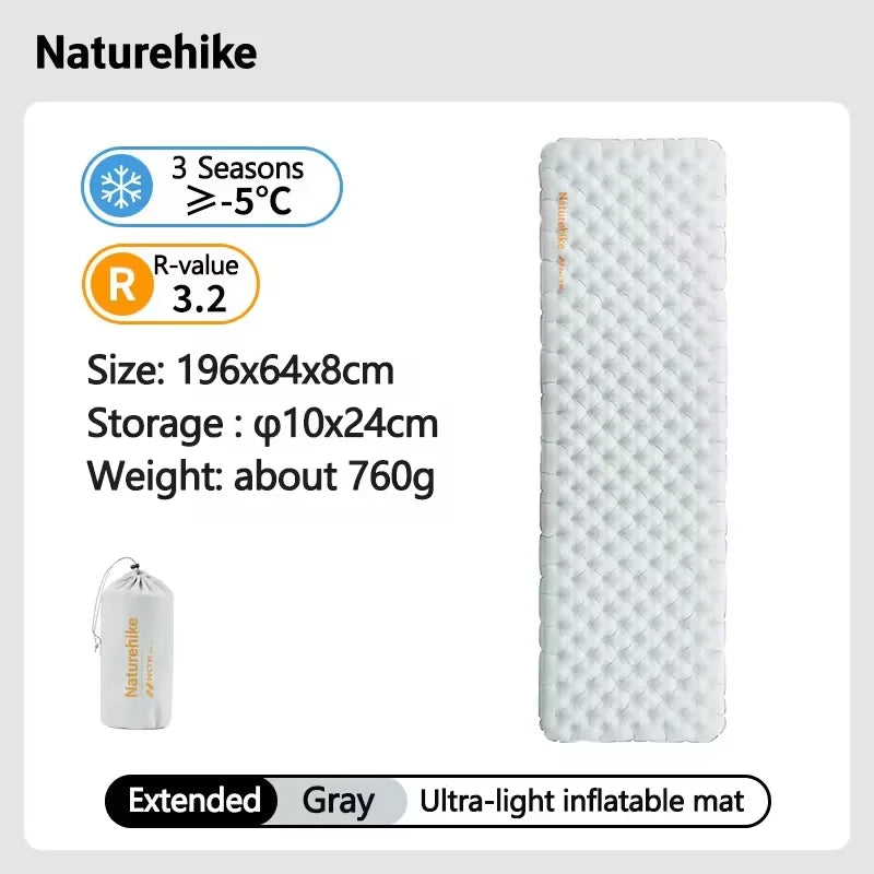 Naturehike Inflatable Mat 3.2/5.8/8.8 R Value Outdoor Ultralight Sleeping Pad Camping Portable Tent Single Moisture-proof Mats