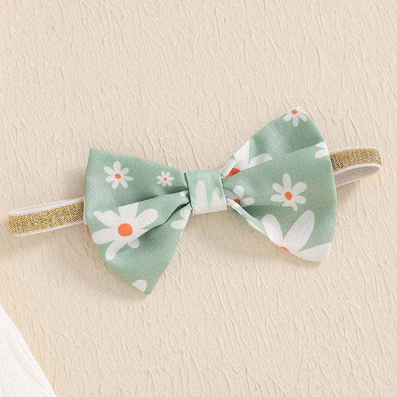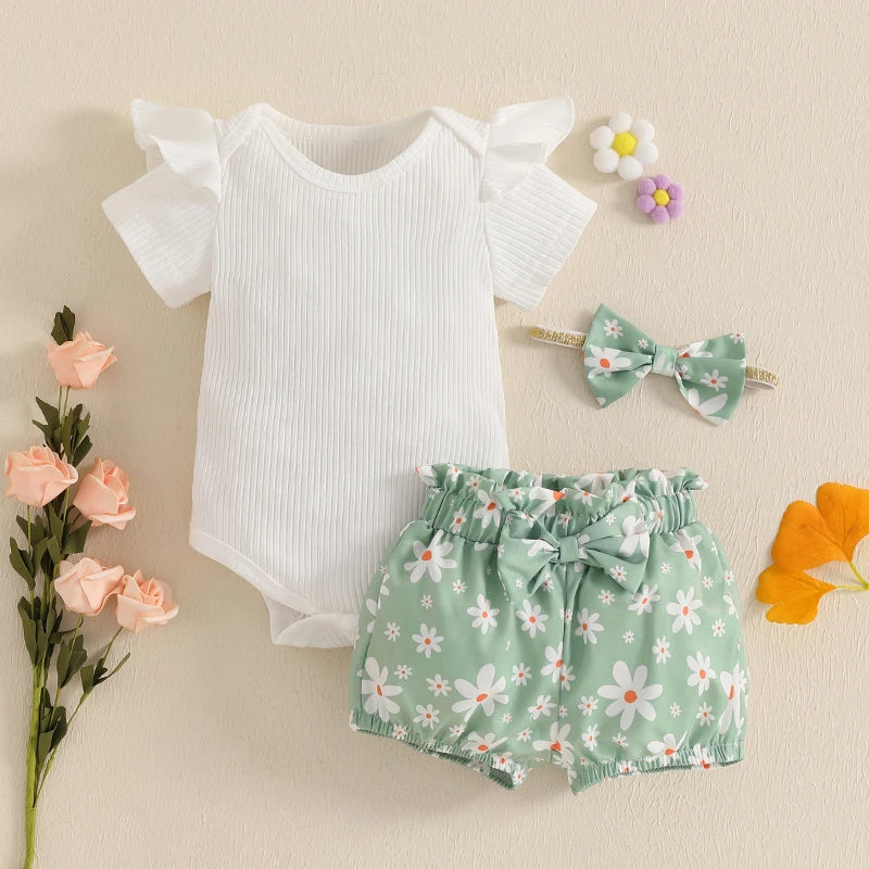 Baby Girls Shorts Set, Short Sleeve Romper with Floral Shorts and Hairband Summer Outfit