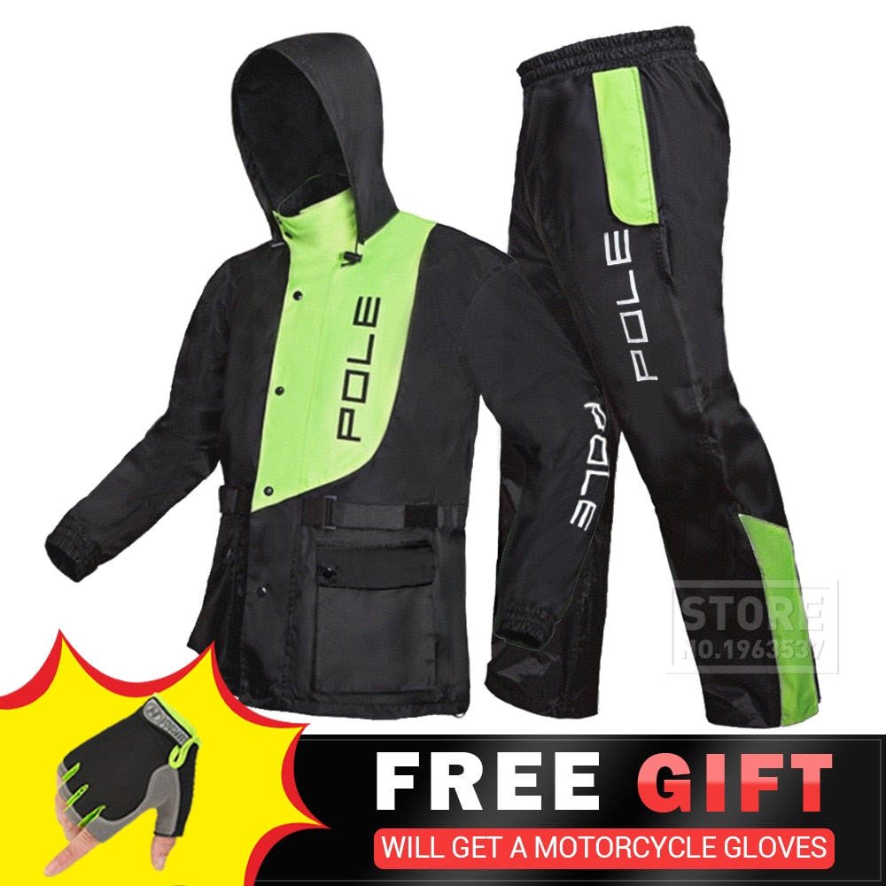 Waterproof Motorcycle Rain Suit Raincoat+Rain Pants Poncho Motorcycle Rain Jacket Motorbike Scooter Riding Rain Suit