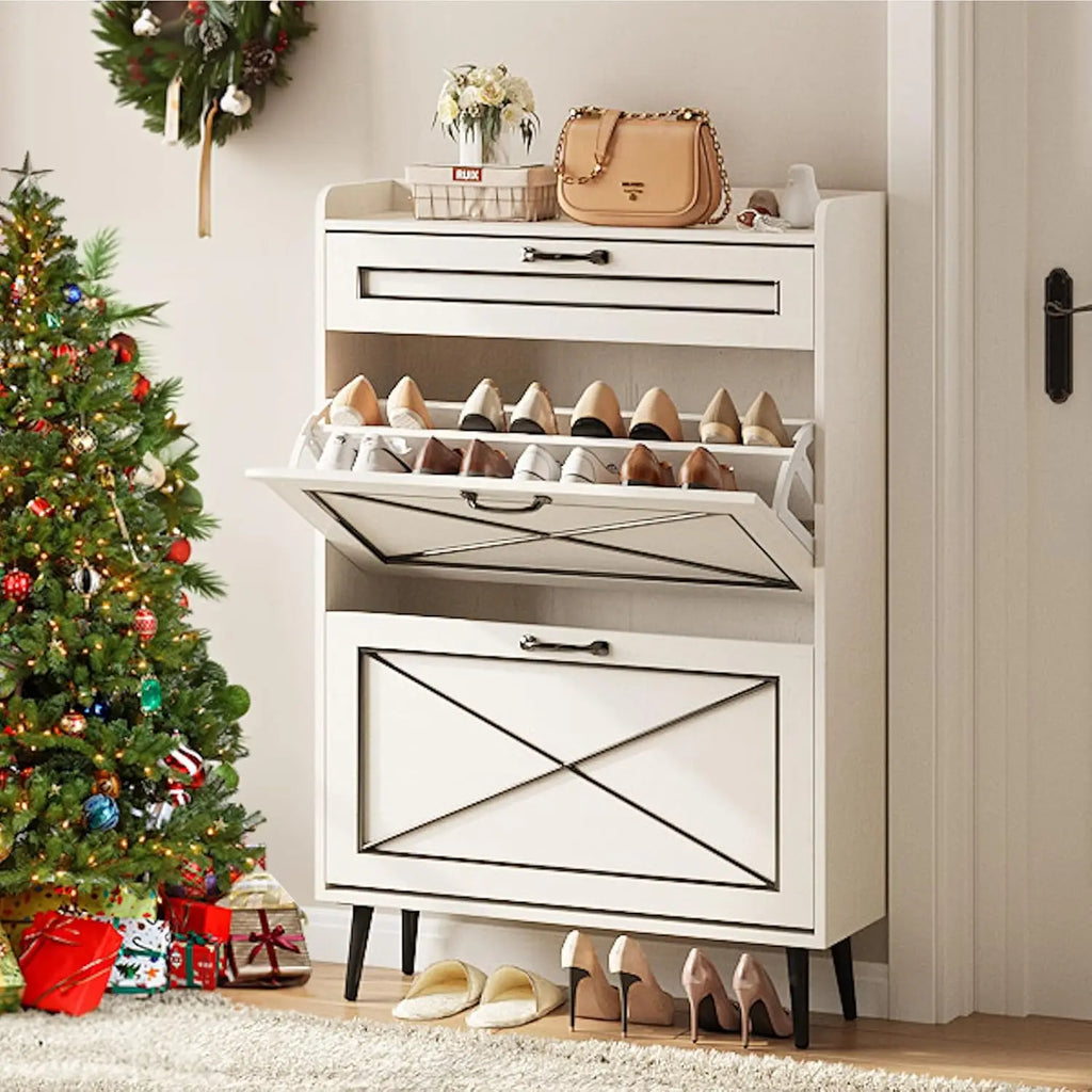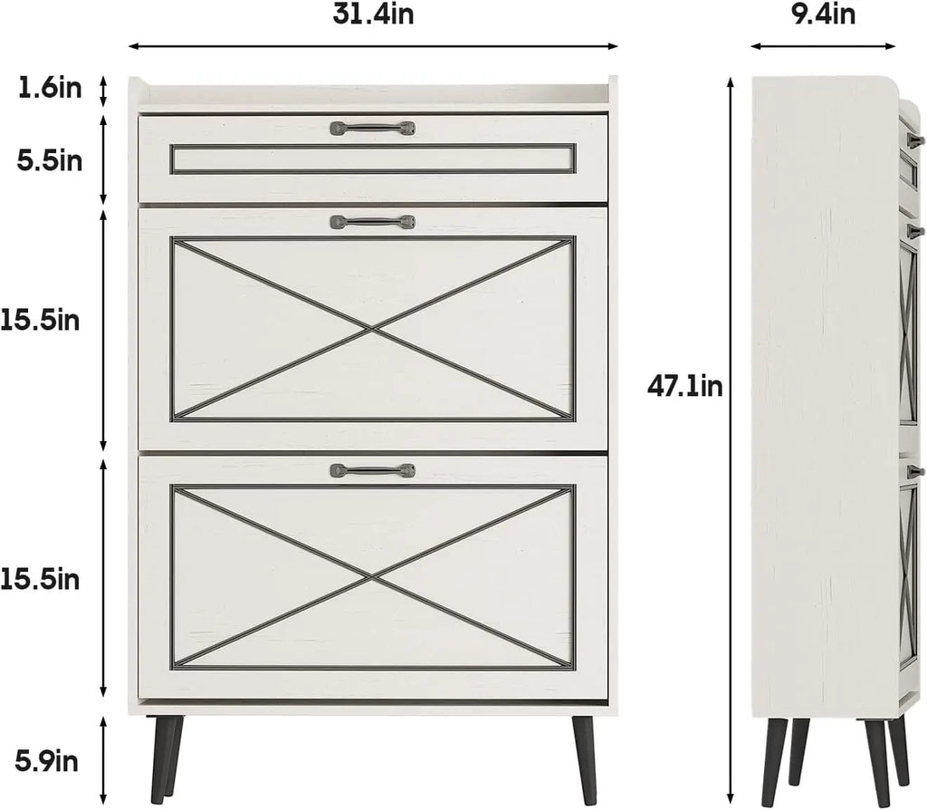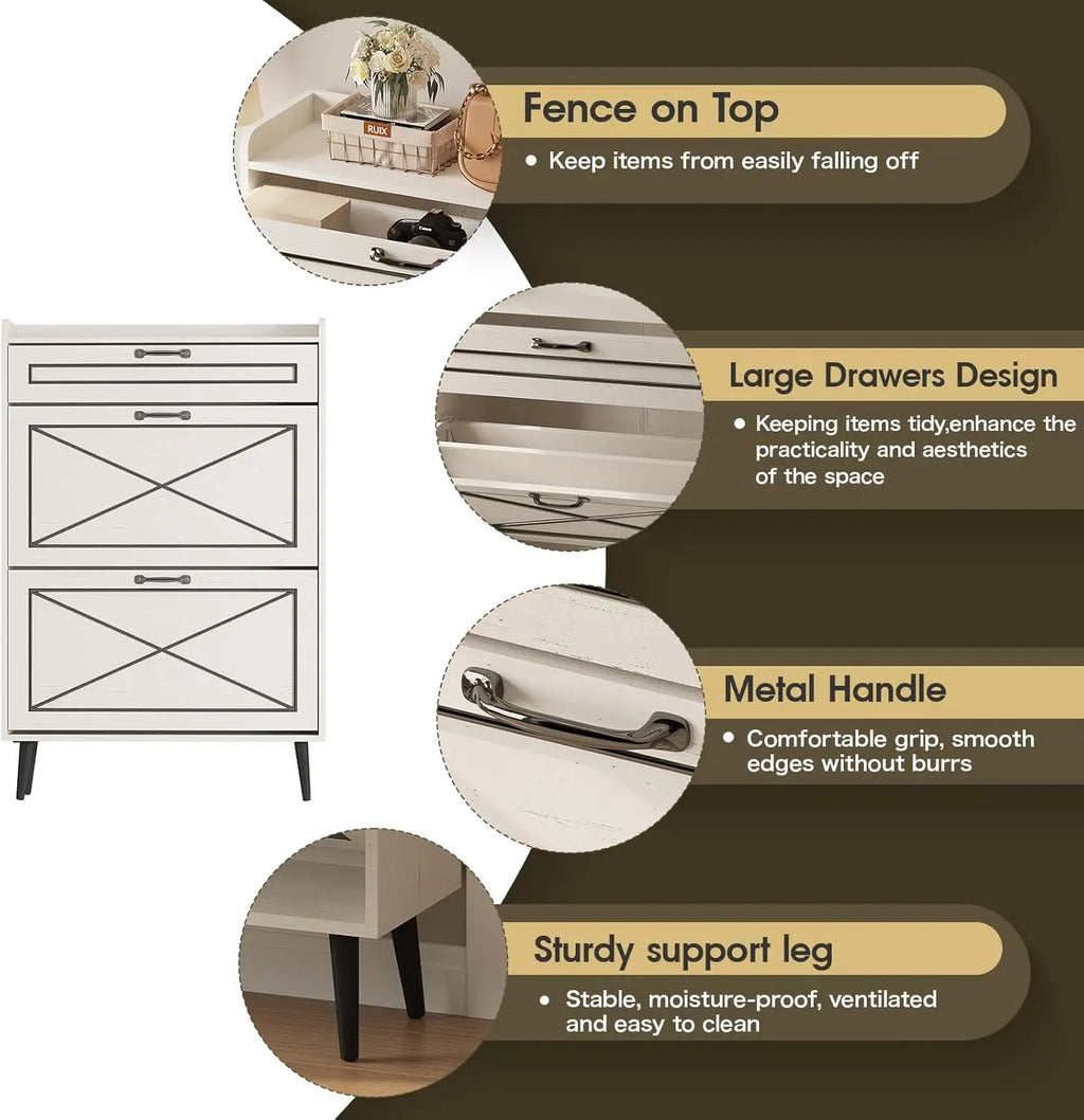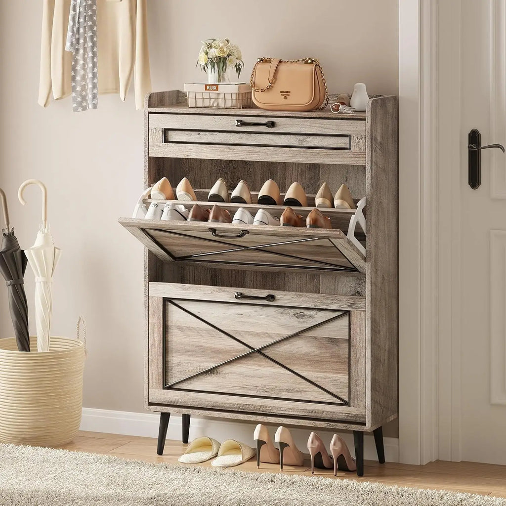 Vabches Shoe Cabinet with 2 Flip Drawers Freestanding Shoe Storage Cabinet Wood Slim Shoe Organizer Cabinet for Entryway Hallway