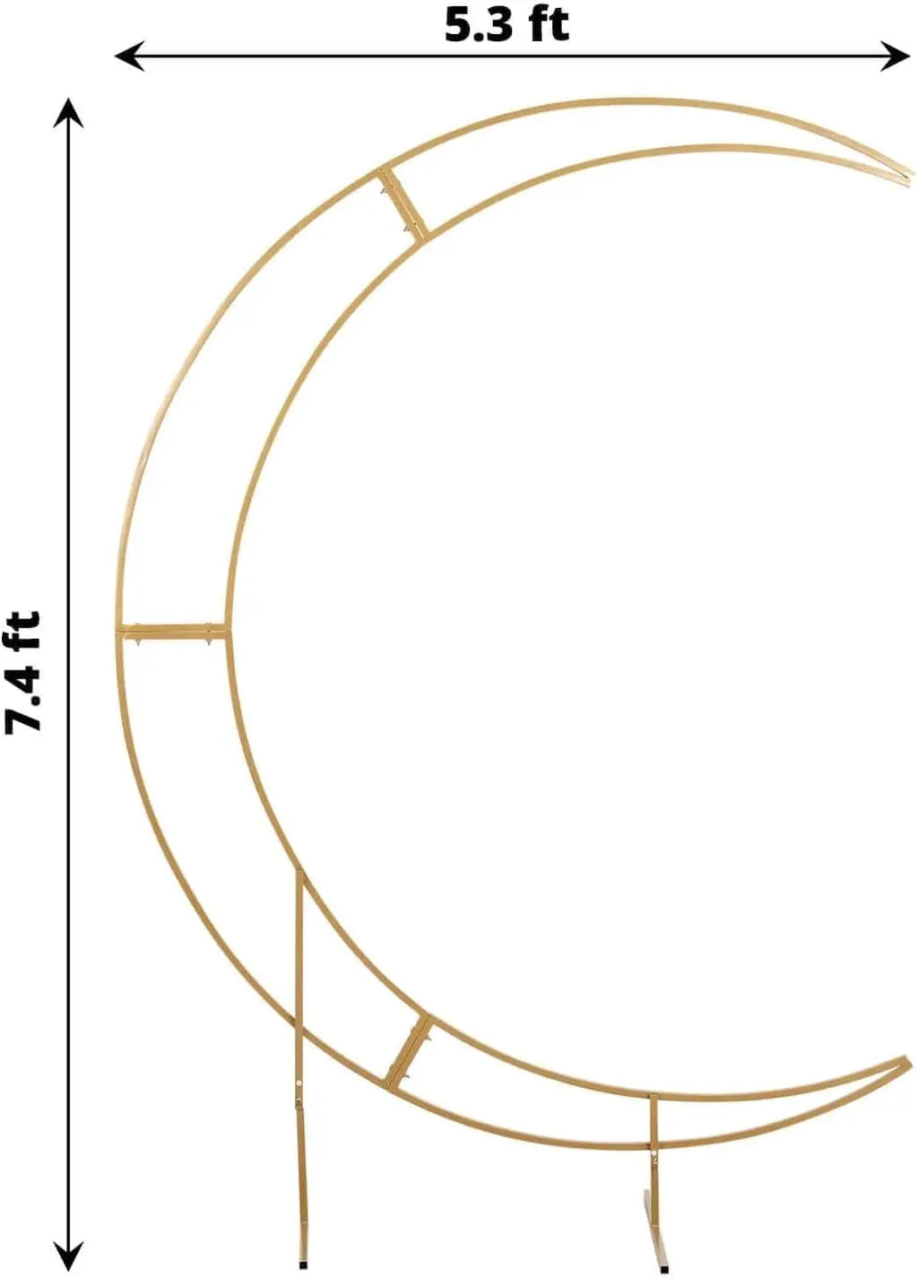 Make your event unforgettable with this gorgeous moon shaped backdrop stand. The sturdy metal construction and metallic gold finish are sure to impress your guests, and the easy assembly will make set up a breeze. Moreover, the included bag of tools and set of instructions make it easy to get started, and you'll be able to enjoy your special day worry-free. This tall, crescent moon shaped arch is perfect for using as a flower arch, balloon arch, or ceremony arch – the choice is yours!