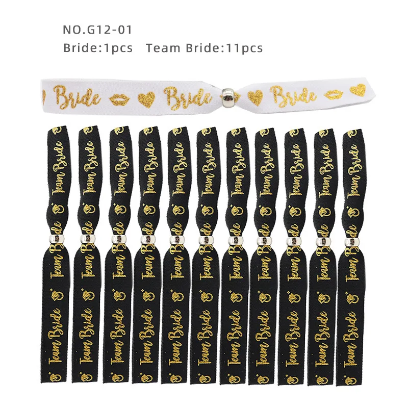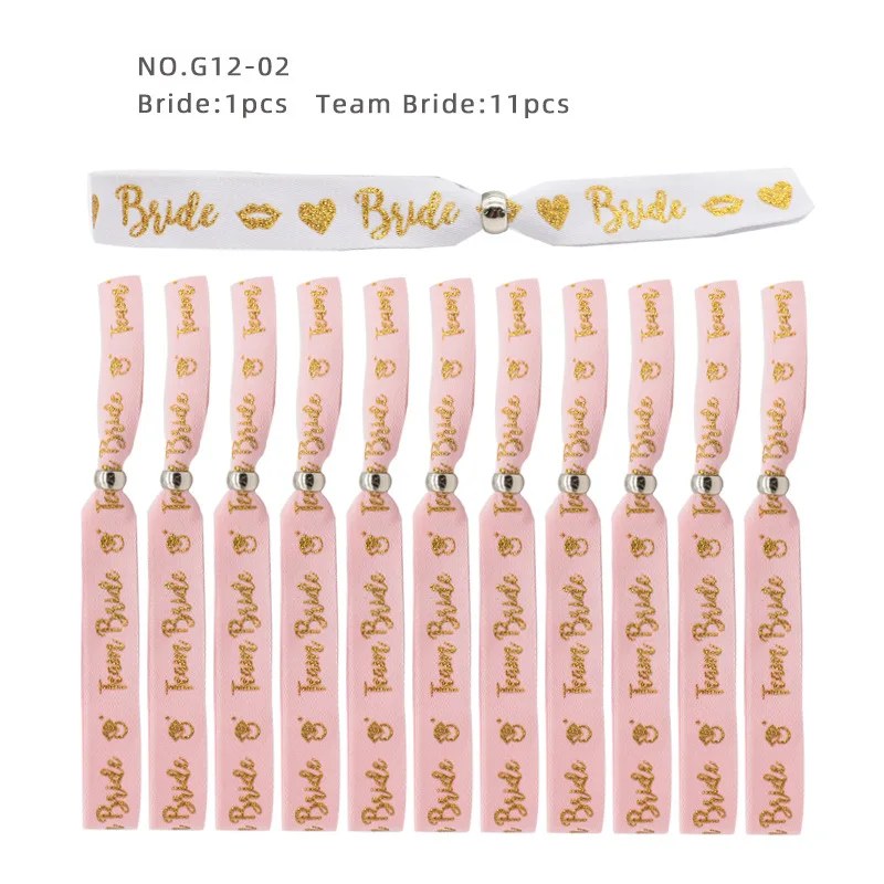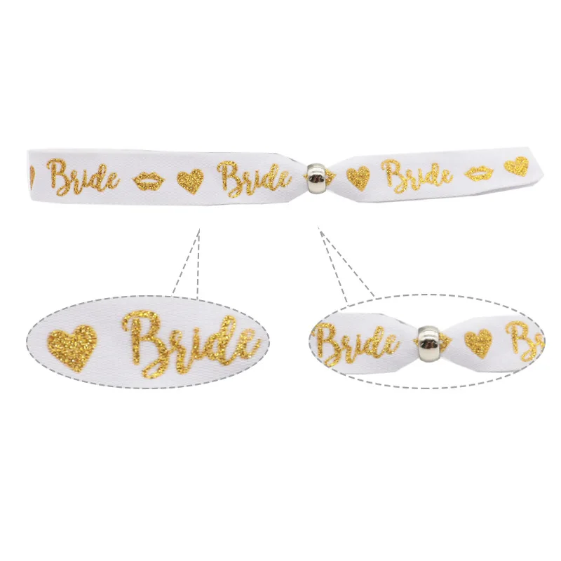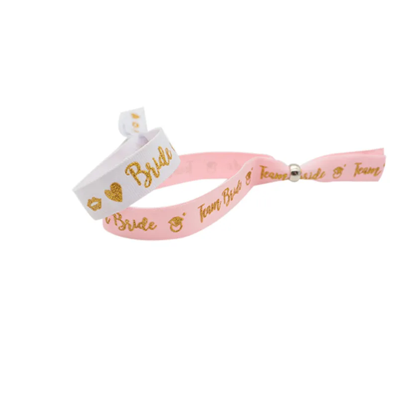 Bride Adjustable Wrist Strap with Sliding Buckle Team Bride Single Party Gold Sparkling Pink Ribbon Hen Party