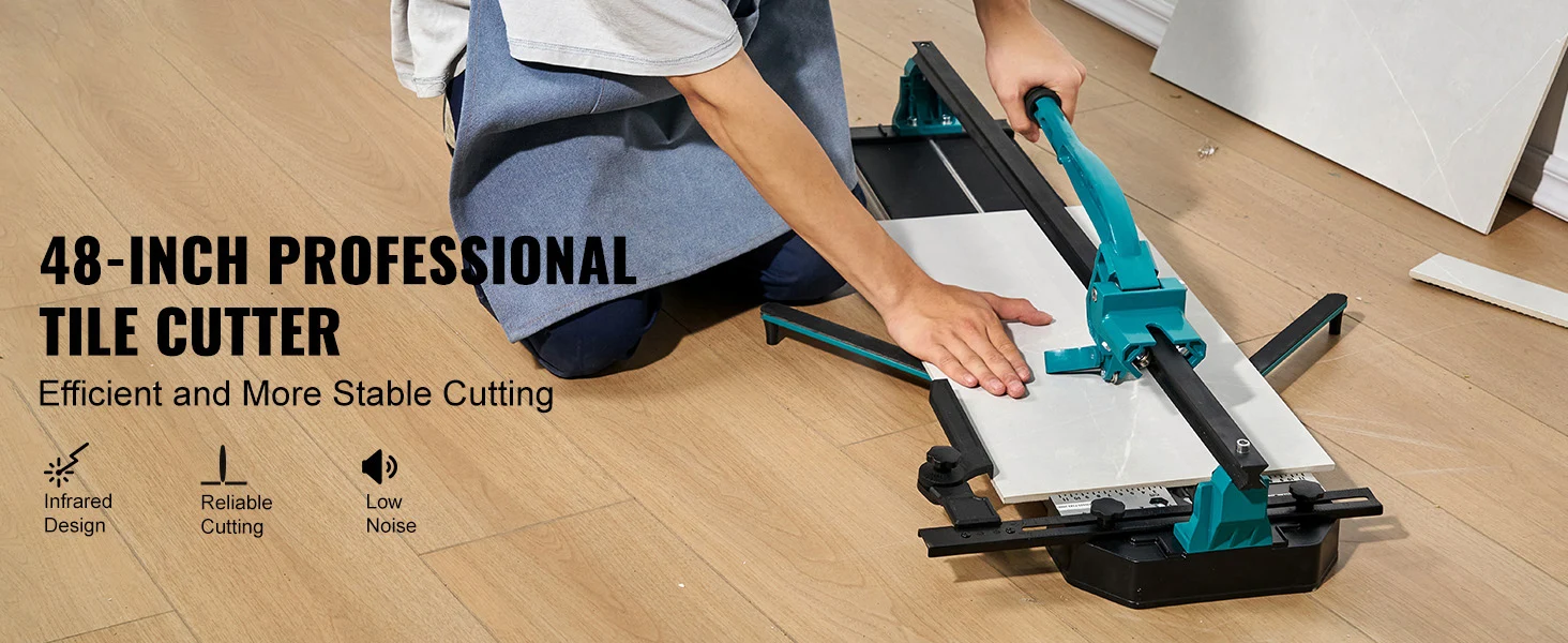 The manual tile cutter cuts ceramic tiles up to 48-inch in length, The cutting thickness is from 0.2'' to 0.6'' (4-15 mm). Perfect for most household tiles.