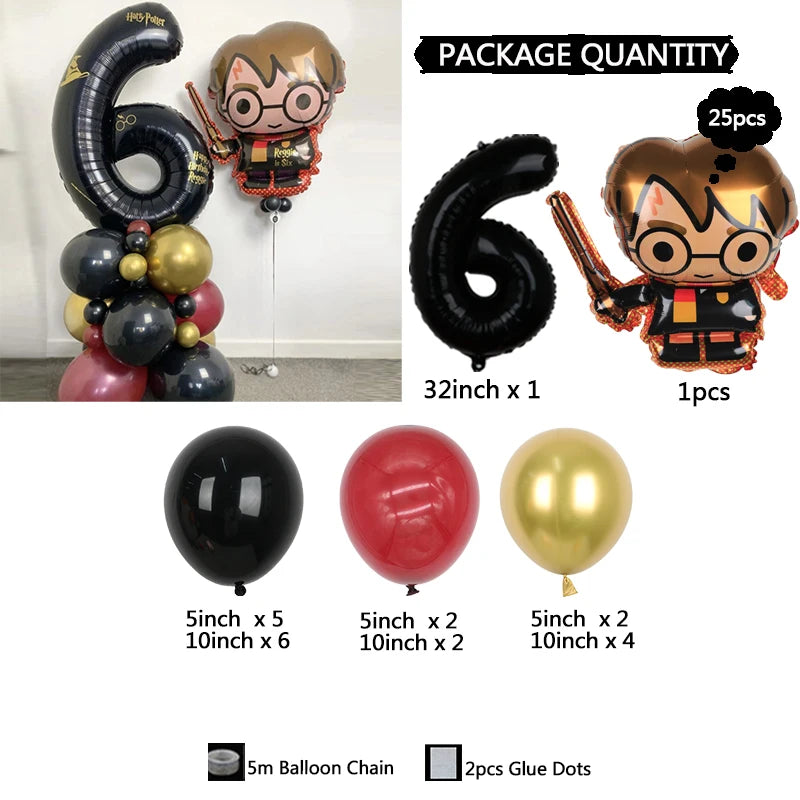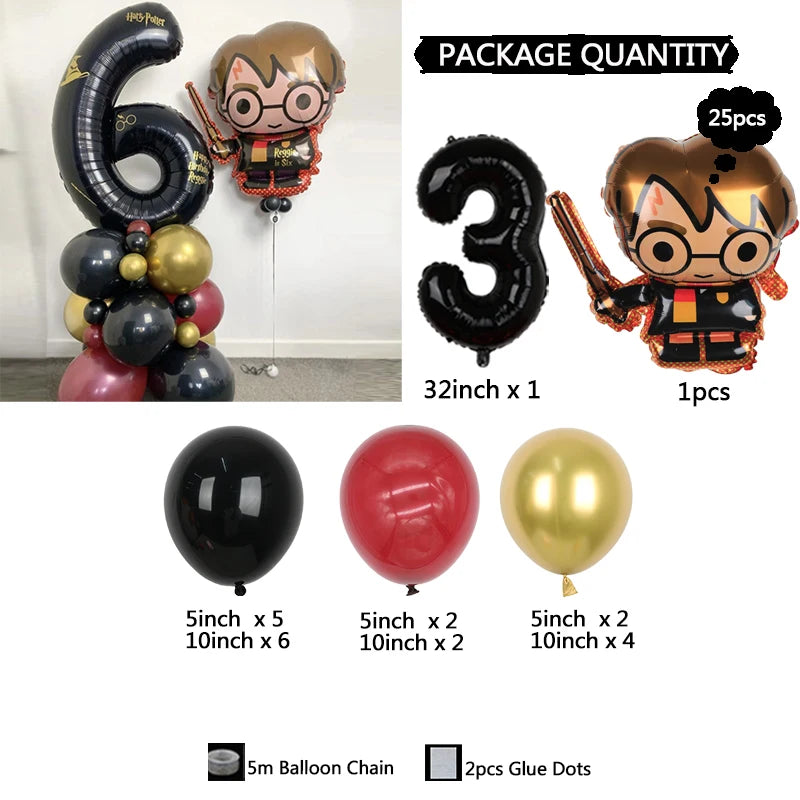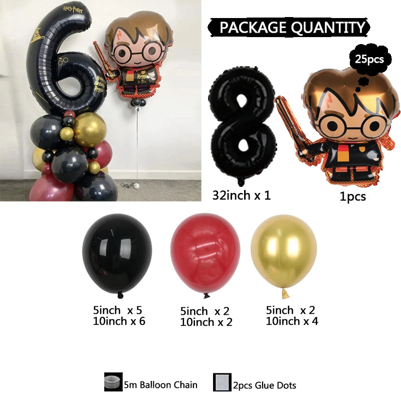 25pcs Harry Potter Theme Balloon Column 32inch Black Number 1-9th Children Birthday Baby Shower Party Decoration Globos Supplies
