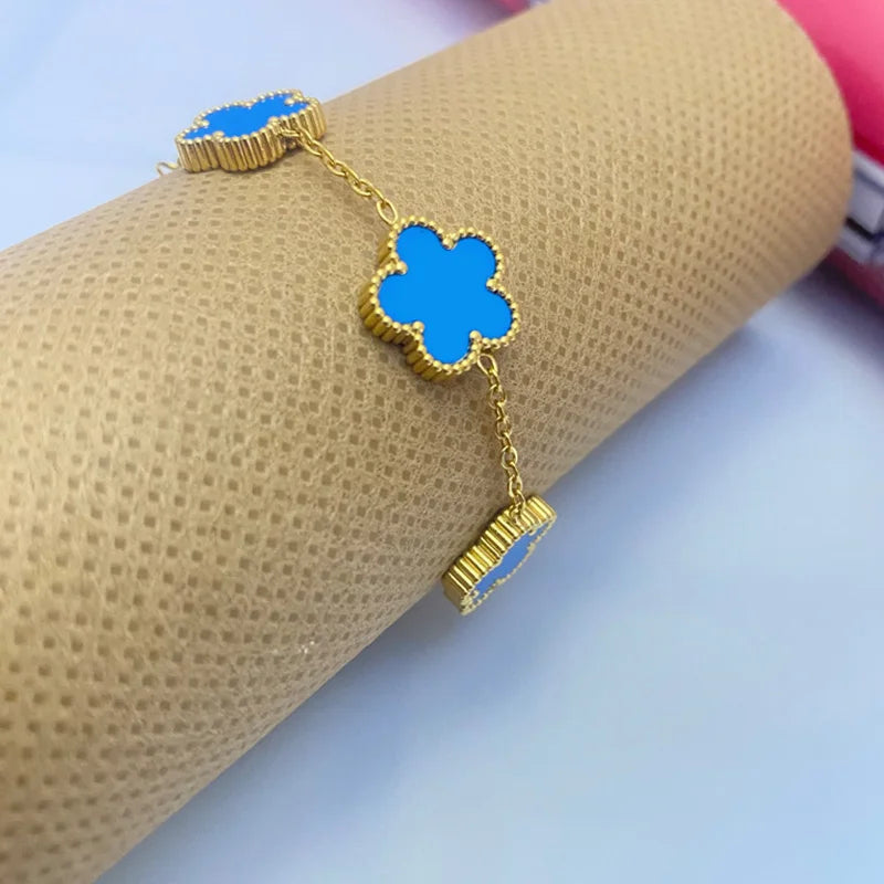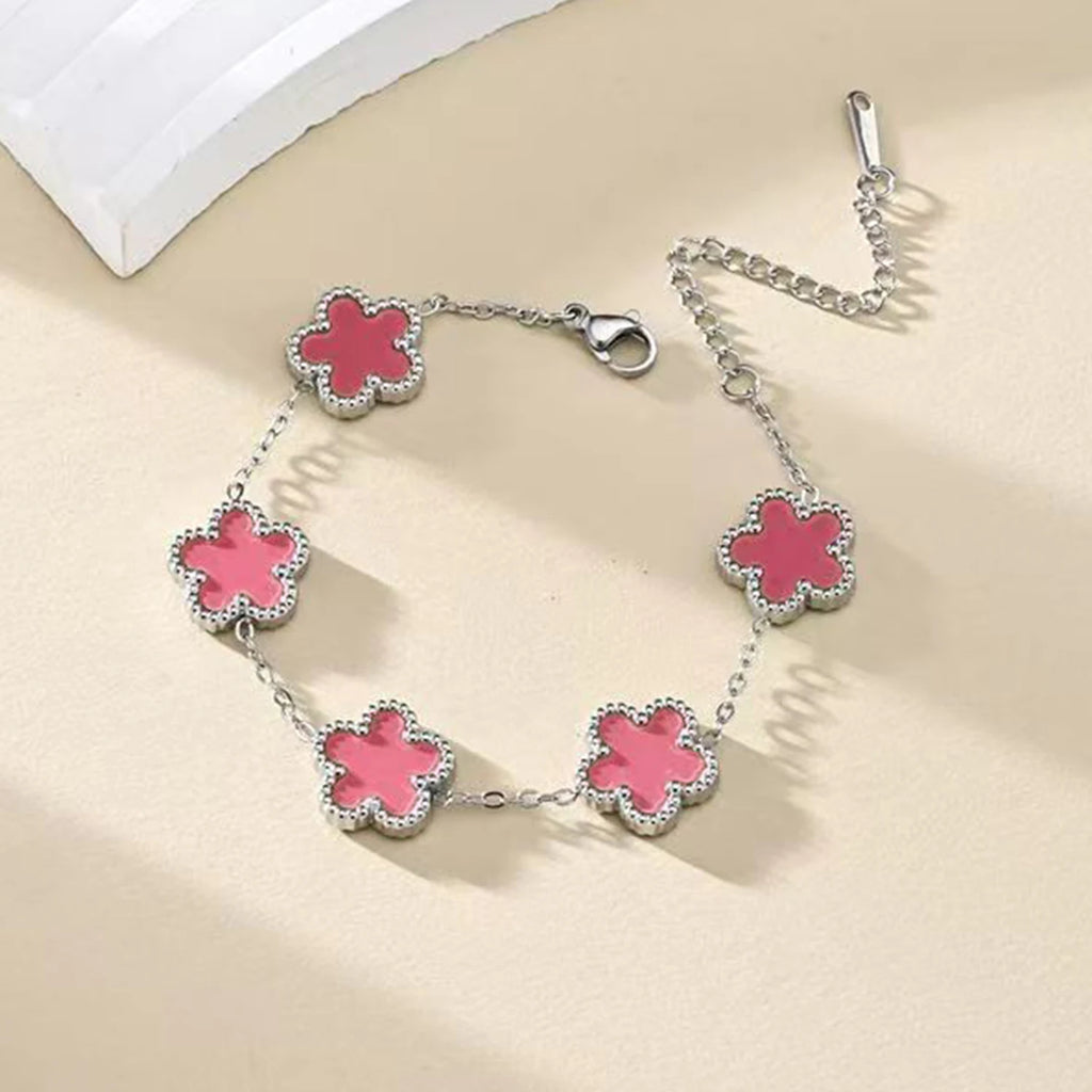 Adjustable Stainless Steel Bracelet Double Sided Bracelets Five Leaf Petals Flower Gold Plated Clover Women Fashion Jewelry