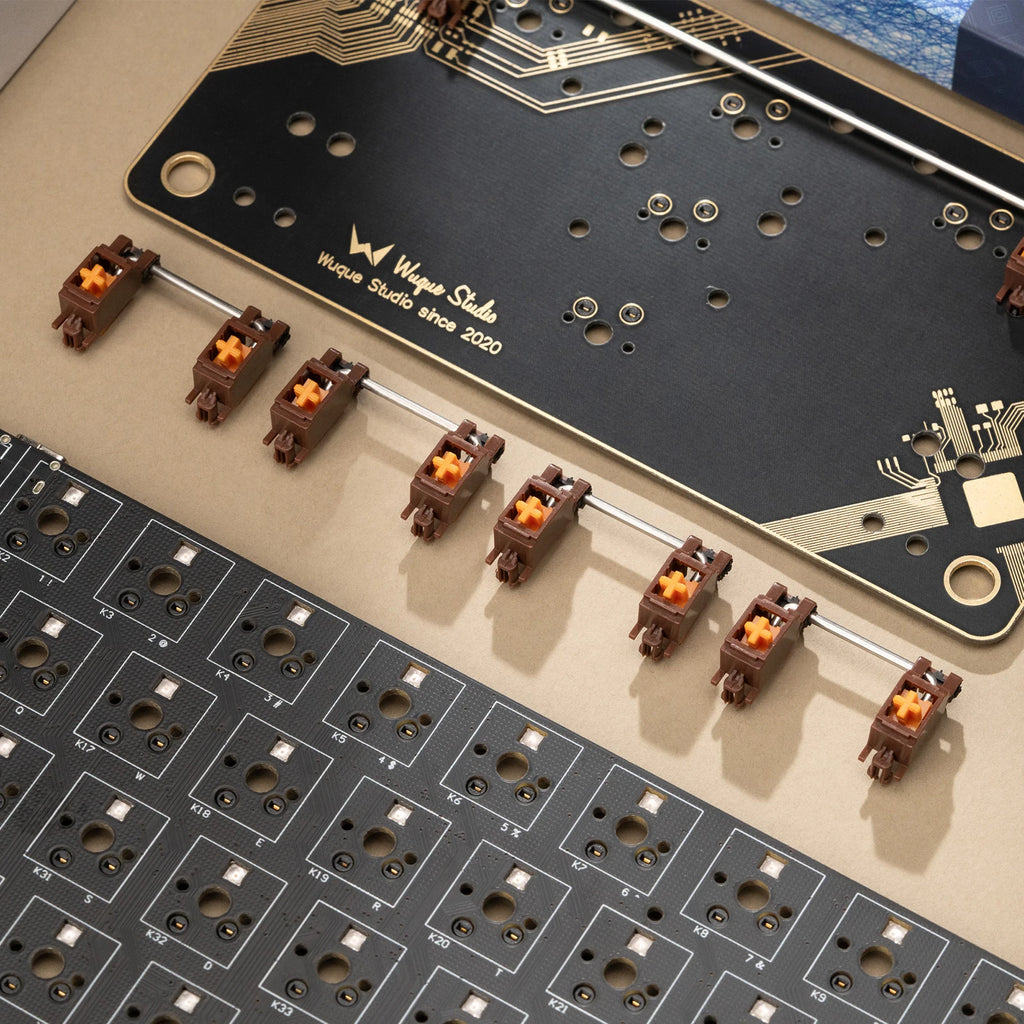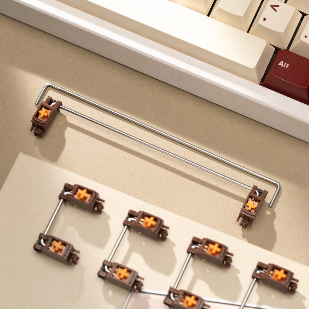 These stabs start from the front end of the wire and the inside of the stabilizer stem respectively to avoid the noise caused by the collision or friction between the wire and the stabilizer stem, which also greatly helps to improve the stability of the stabilizer.