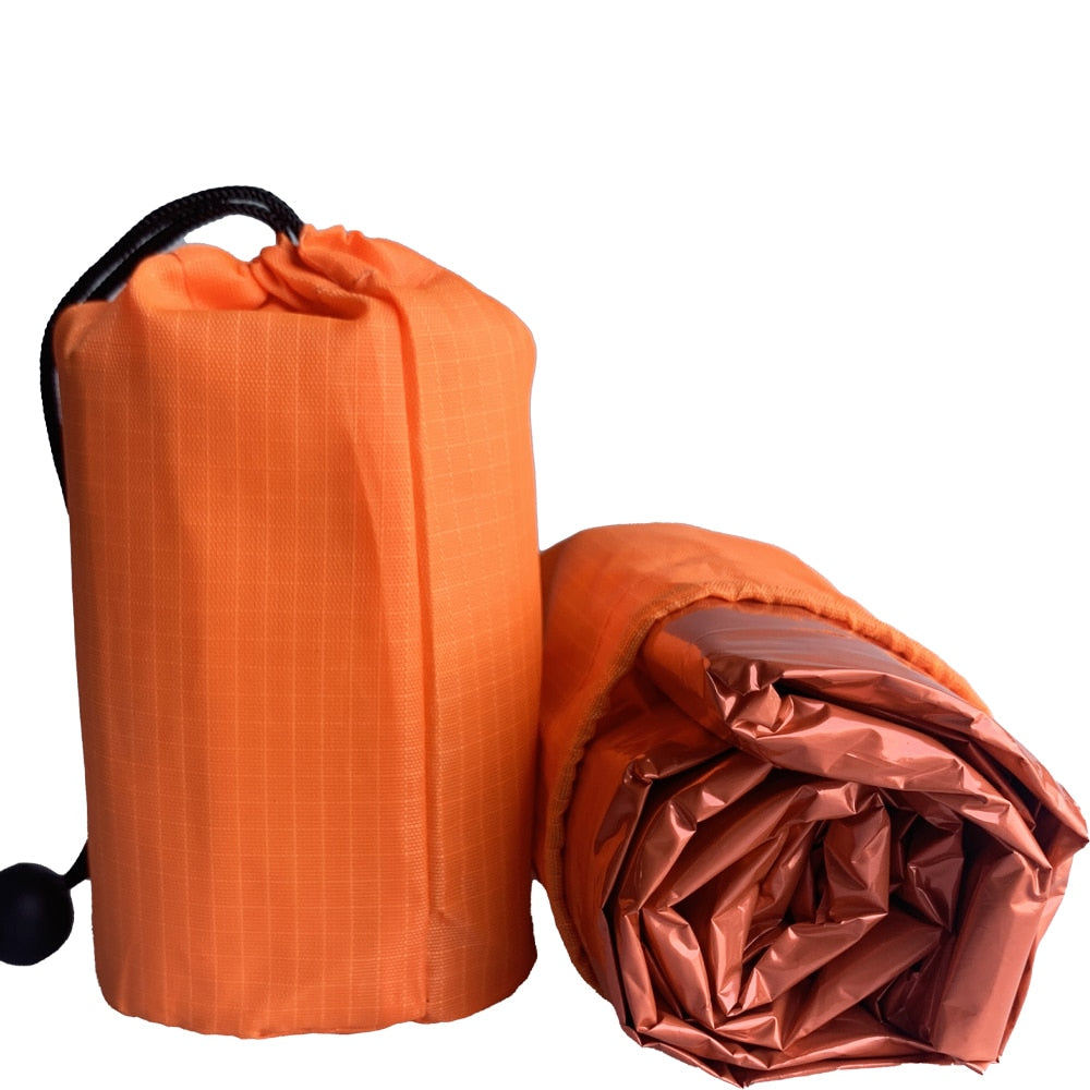 Estos sacos de dormir de emergencia están fabricados con material de mylar extragrueso de 26 um con un revestimiento resistente a desgarros y pinchazos。