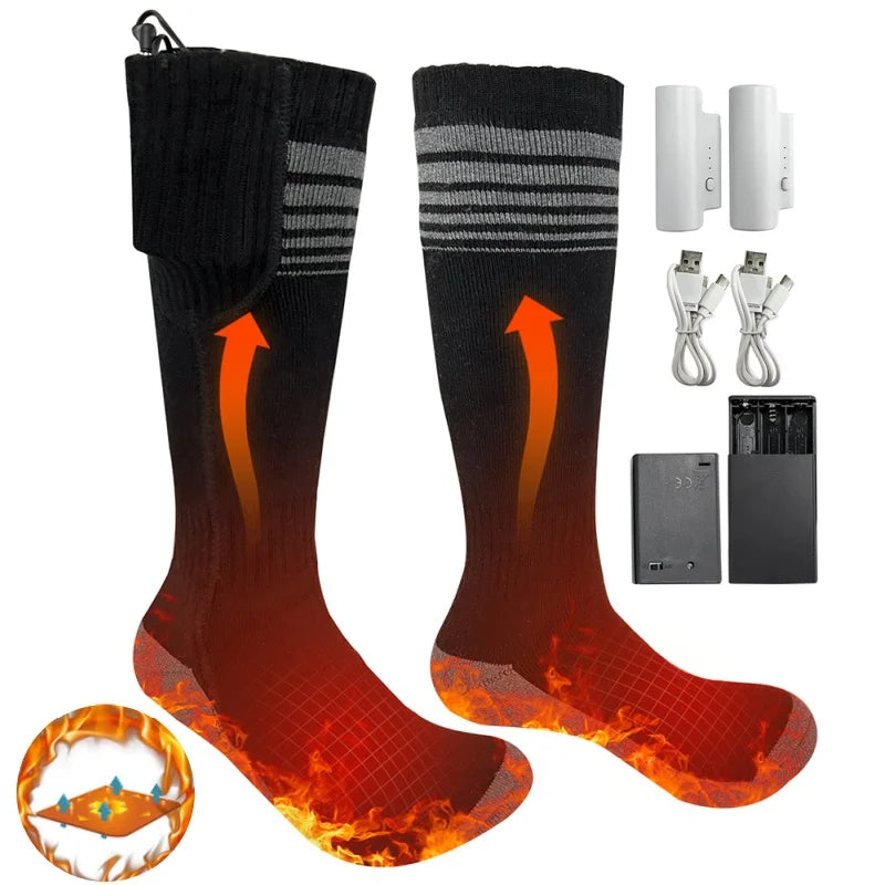 Winter Heating Socks With Battery Box Rechargeable Anti-Cold Unisex Thermal Heated Foot Warmer Outdoor Camping Ski Sports Winter