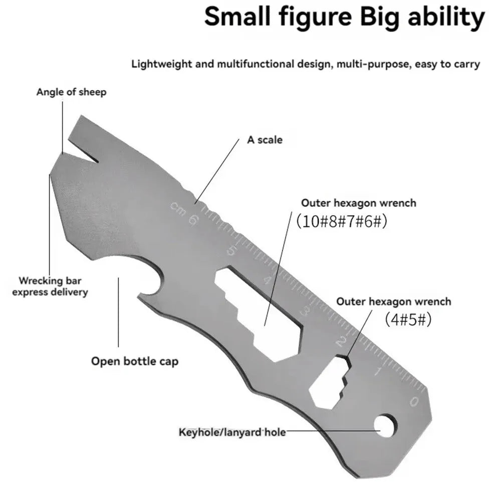 1. Function: engraving scale, M wrench, batch head wrench, bottle opener, pry bar/disassembly courier, screwdriver, fluorescent tube clamp slot (1.5 * 6mm)