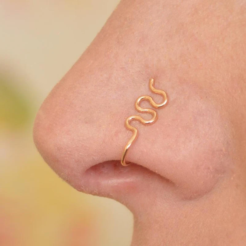 Piercing falso de plata 925 para la nariz, anillo bohemio para tabique, anillo de joyería para tabique falso lleno de oro hecho a mano, joyería de aro Punk
