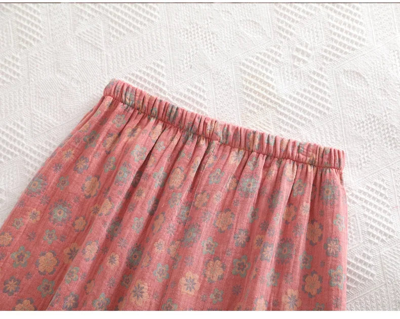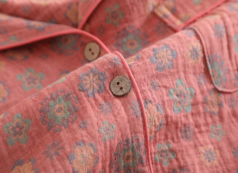 Floral Printed Cotton Women's Pajamas Suit for Spring and Autumn Jacquard Long Sleeved Large Size Home Women Sleepwear Set