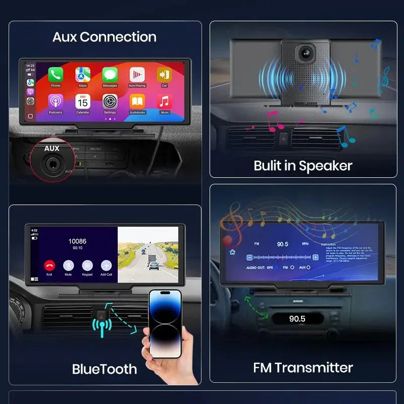 This in-car device integrates multiple intelligent features that not only enhance the safety and convenience of driving, but provide a wealth of entertainment options, making it the ideal companion for you on the road.