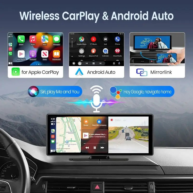 1.Wireless CarPlay/Android Auto:You just need to turn on Bluetooth and WiFi to connect, and Carplay wants Automatica LLY connect next time. You can use voice control Carplay to play music, navigation, view text messages, etc.