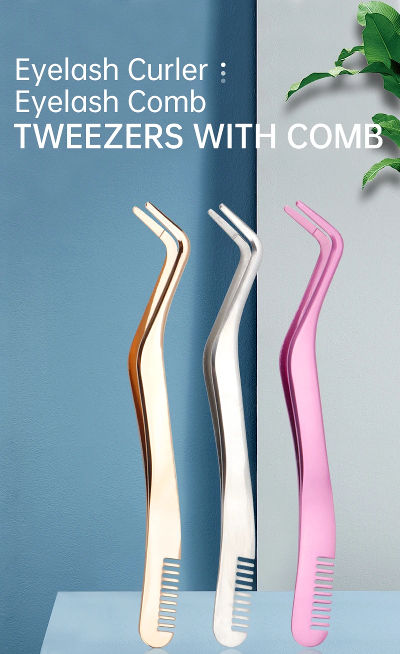 1 PC Eyelash Comb Tweezers Makeup Stainless Steel Non-magnetic Pincet Volume 3D Lashes Extension Tweezers Tools