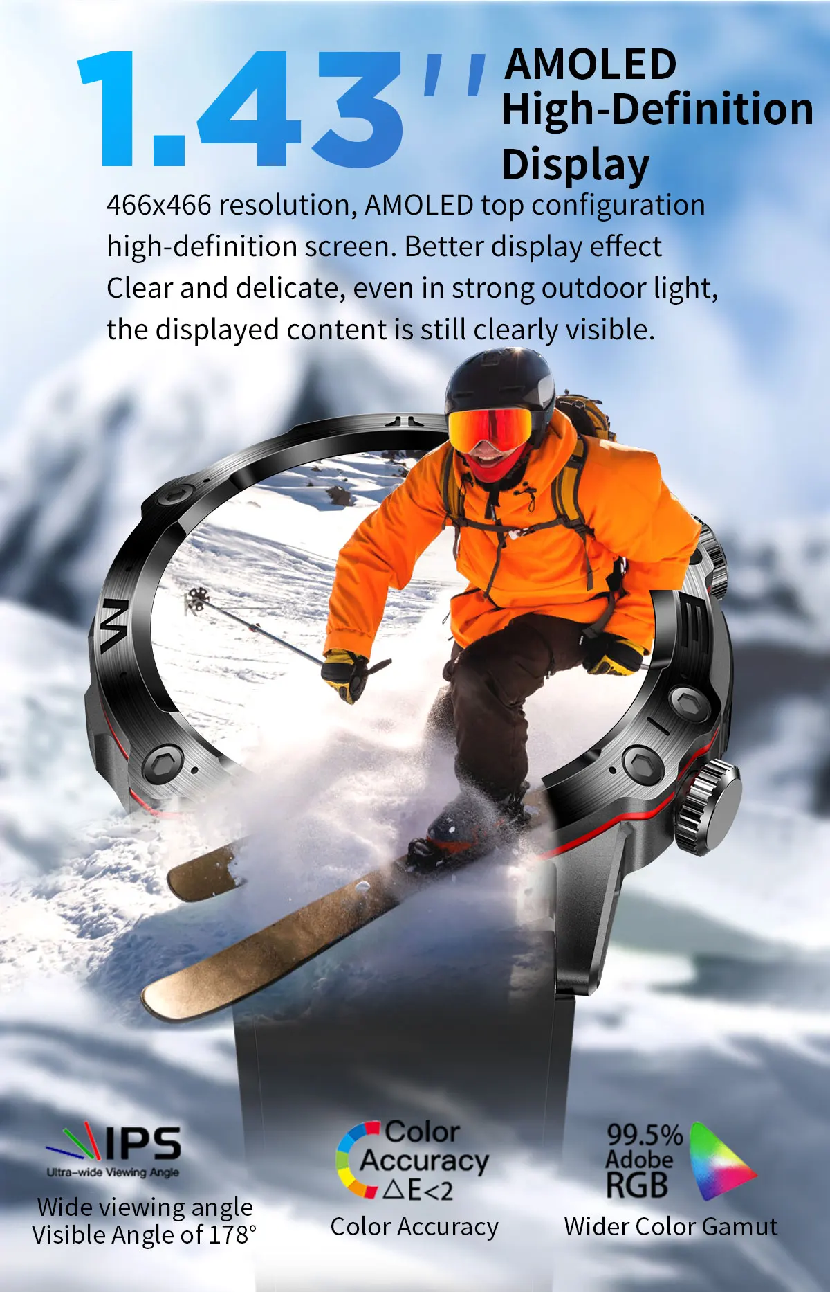 Display: 1.43 inches-high AMOLED HD large screen