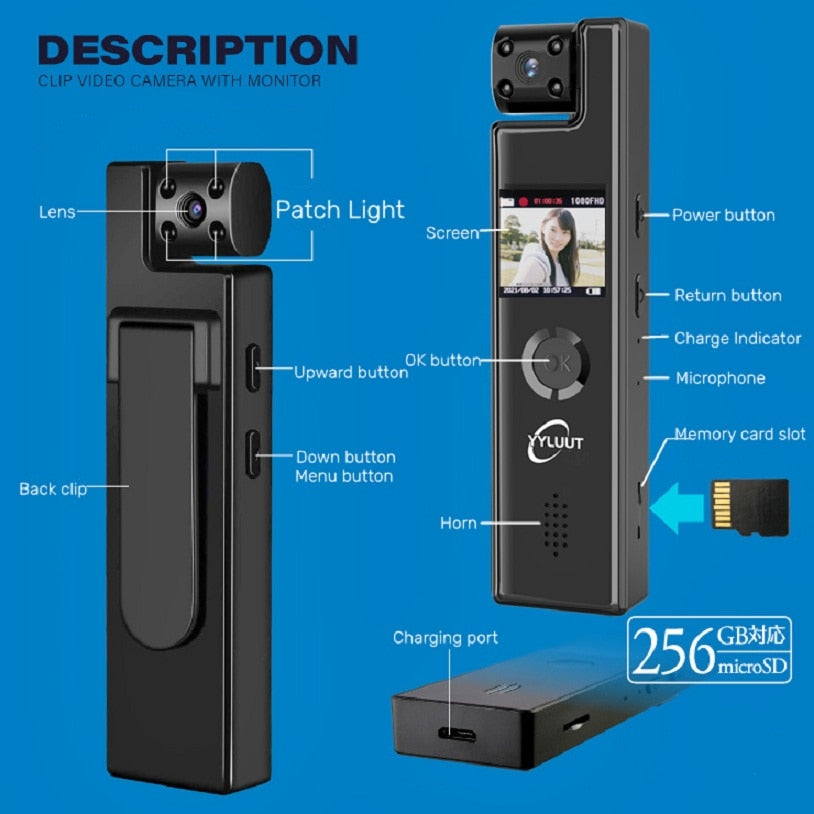 Body Camera Mini Digital Camera HD Screen Night Vision Motion Detection Snapshot Loop Camcorder Sports DV Nanny Cam