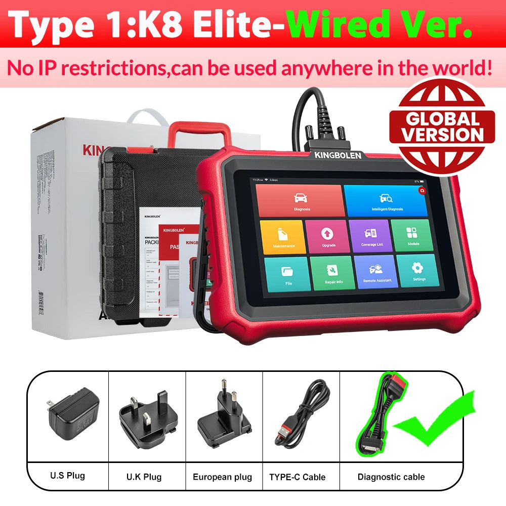 KINGBOLEN K8 ELITE All System Car Diagnostic Tool + 34+ Service + ECU Coding + Bidirectionnal Control + For VAG Guiding Function + CANFD/DOIP/FCA AutoAuth + Lifetime Free Update Lifetime Free Use
