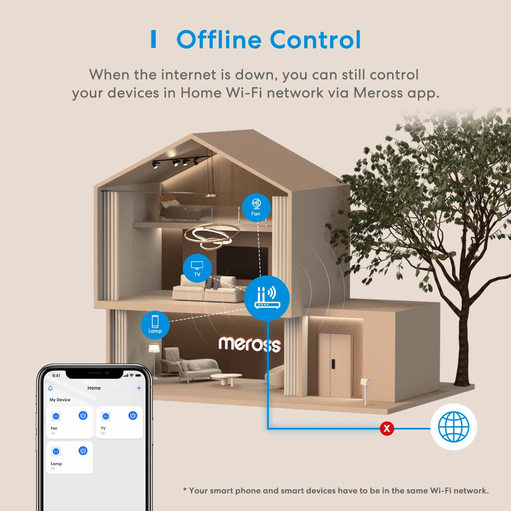 When the internet is down,you can still control your devices in Home WI-FI network via Meross app