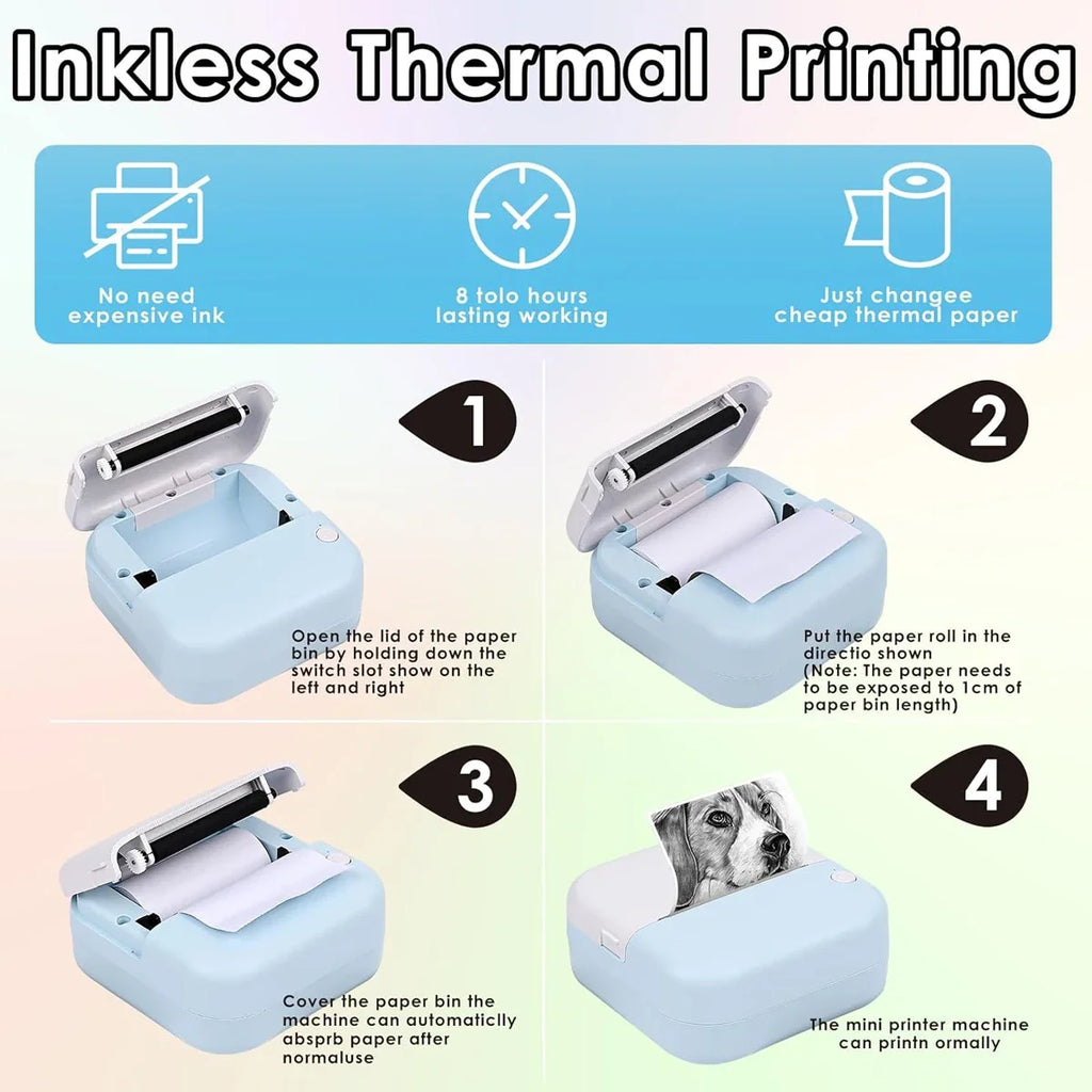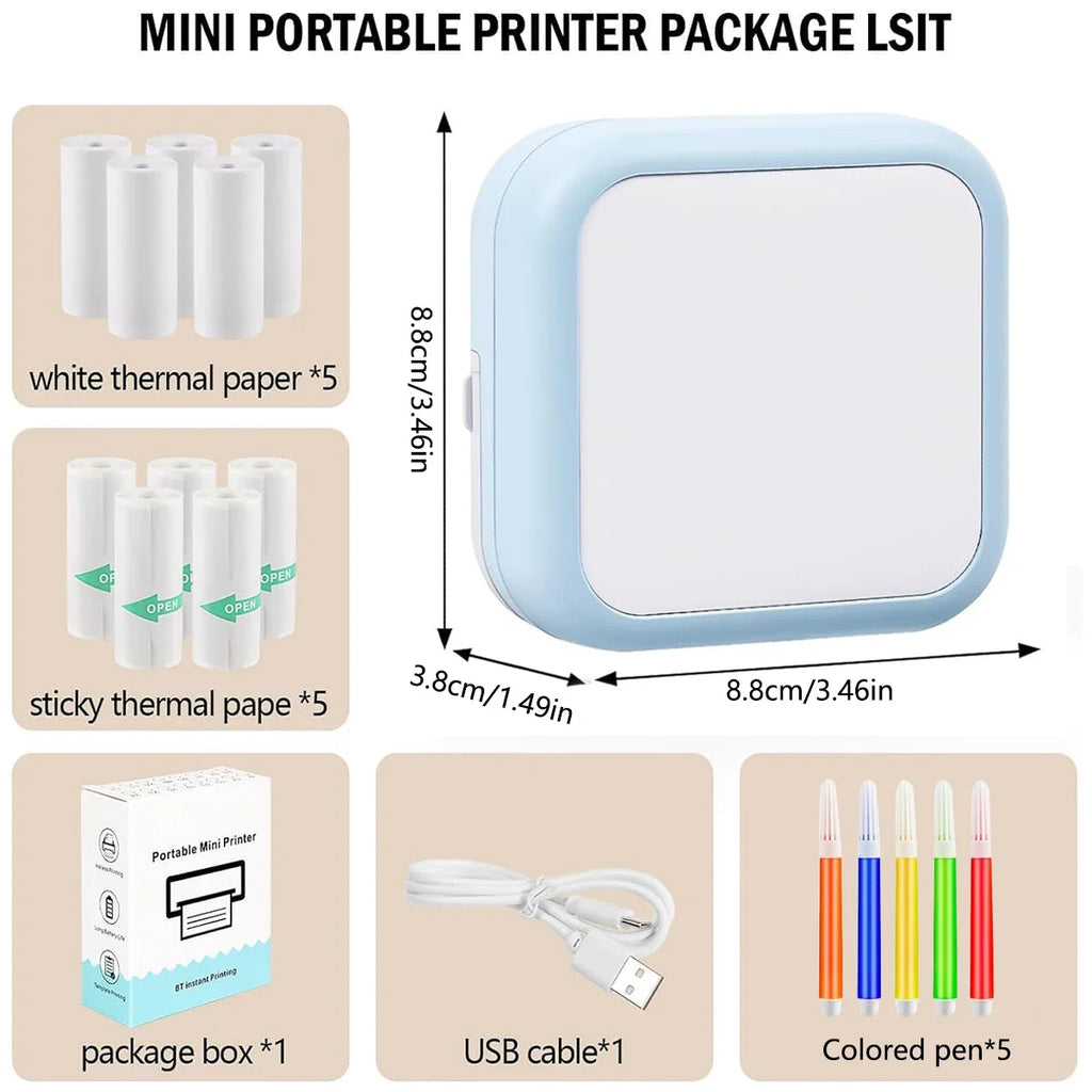 Mini Printer, Portable Thermal Photo Printer, Inkless Sticker Maker Machine for Notes, Photos, Stickers, Labels