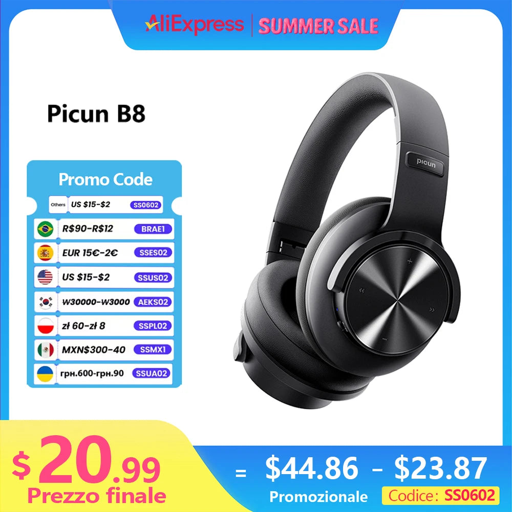 Picun B8 Bluetooth Headphones 120H Playtime Headset Wireless Bluetooth 3EQ Mode Low Latency Hands-Free Calls Over Ear Headphones