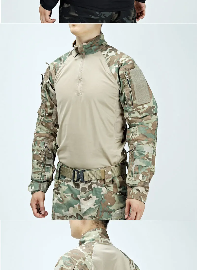 Tactical Combat Shirt Men Cotton Tactical Uniform Camouflage T Shirt Multicam US Clothes Camo Long Sleeve Shirt