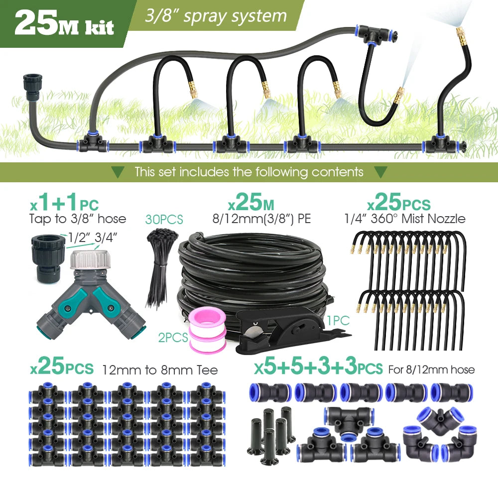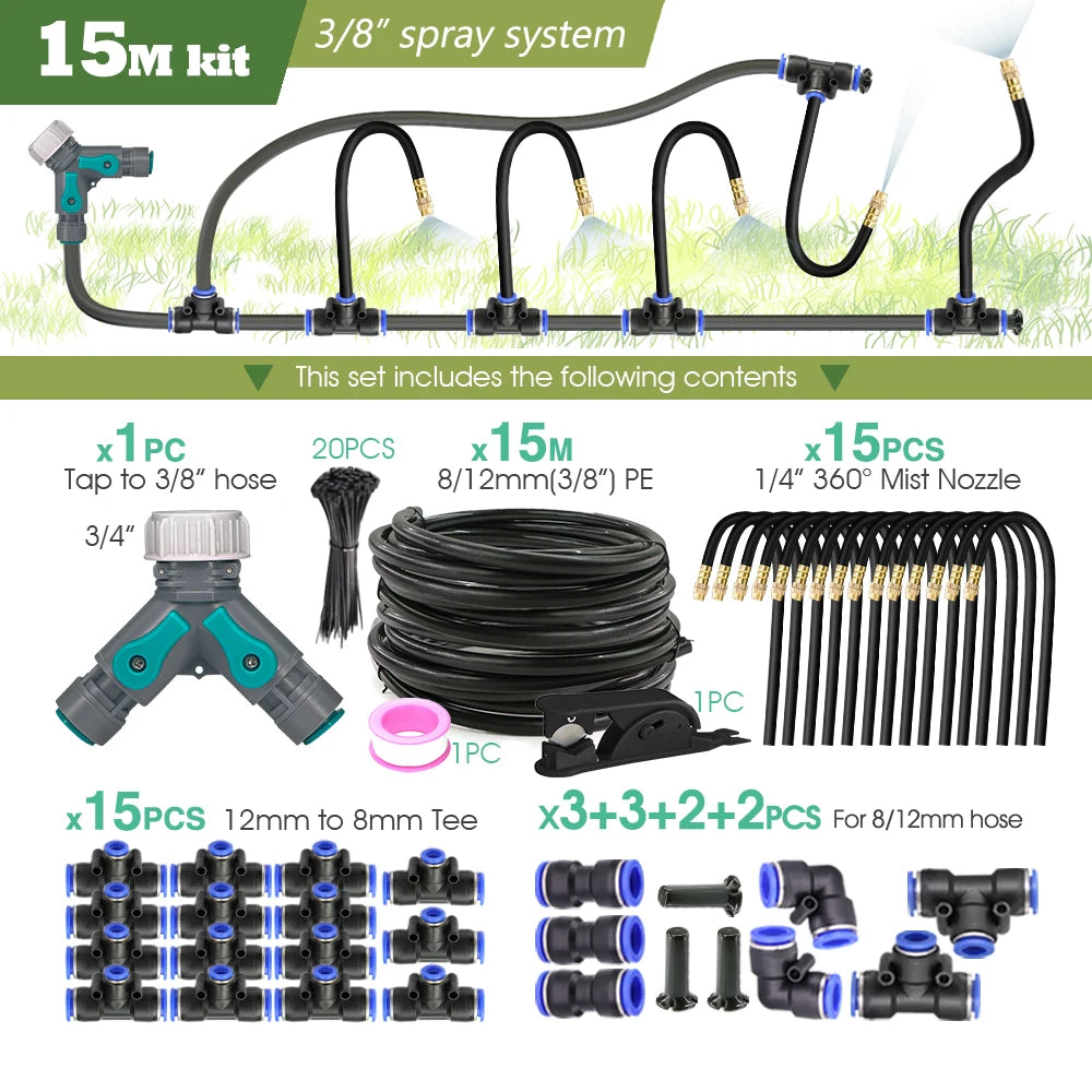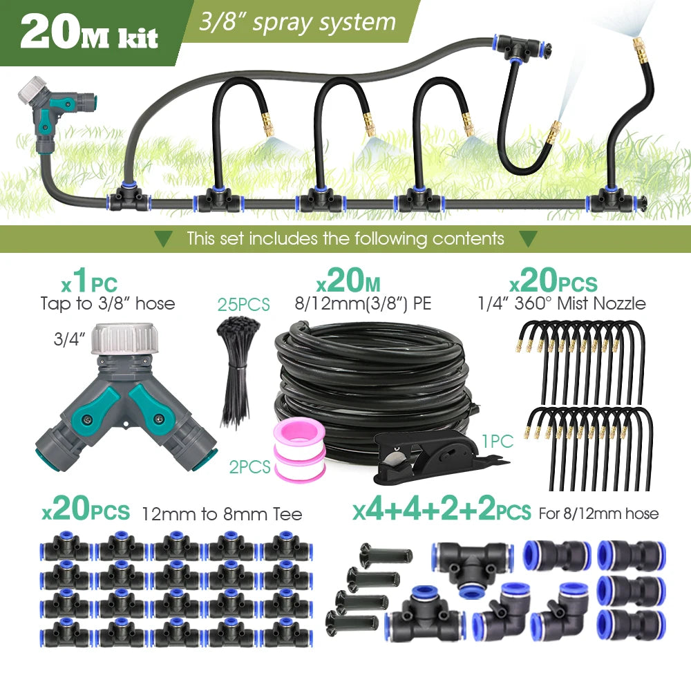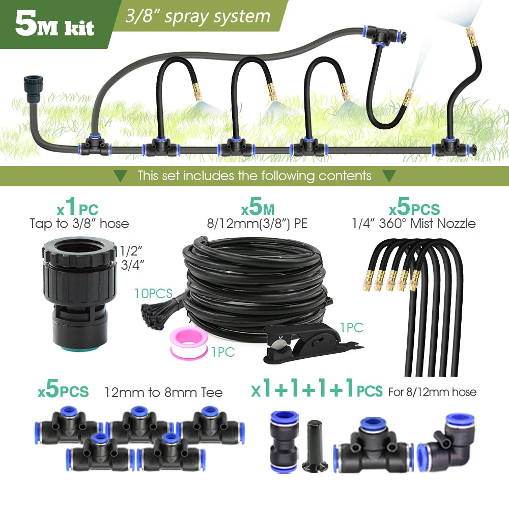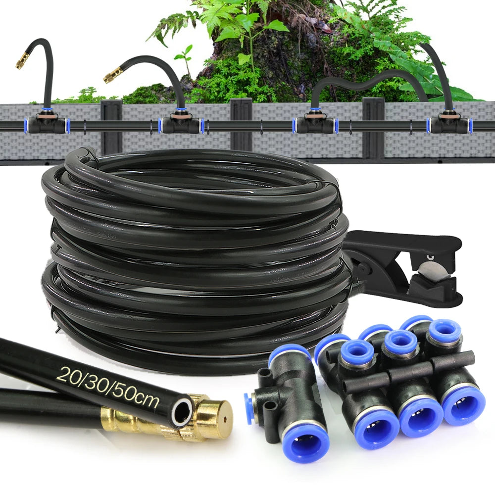 Black 20cm Bendable Brass Nozzle DIY Mist Spray Kit for Garden Courtyard Plants Automatic Atomizing Cooling System 3/8" Hose