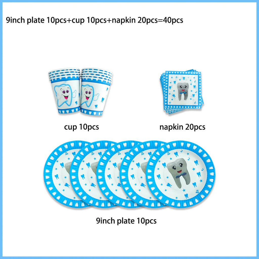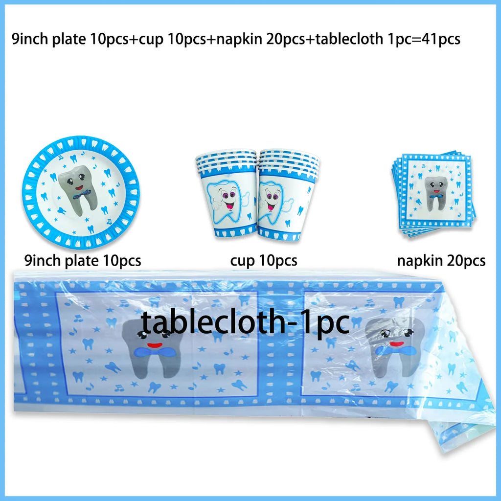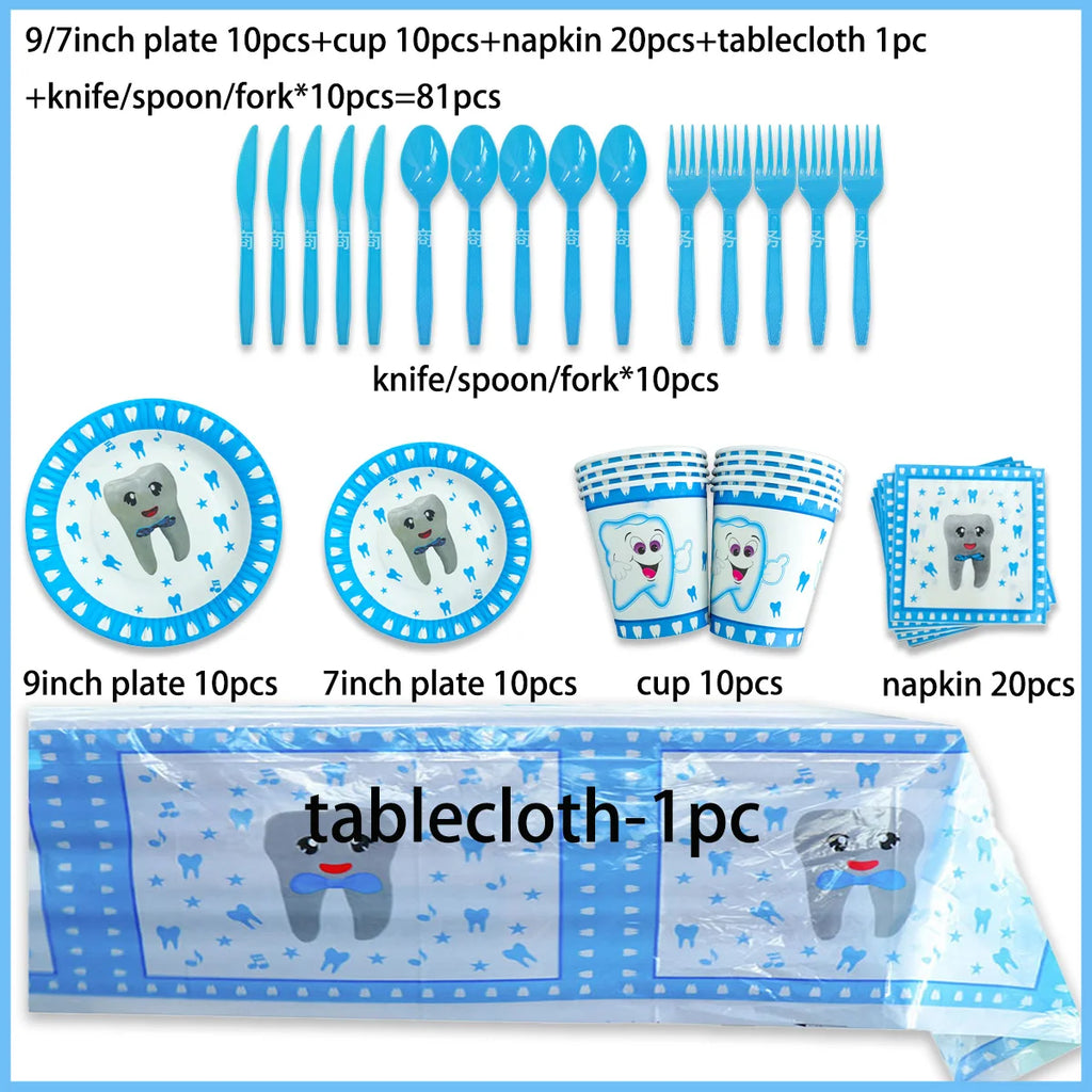 My First Tooth Blue Theme Party Disposable Tableware Stes Boy Girl First Tooth Birthday Party Decor Cups Plates Napkins Banners