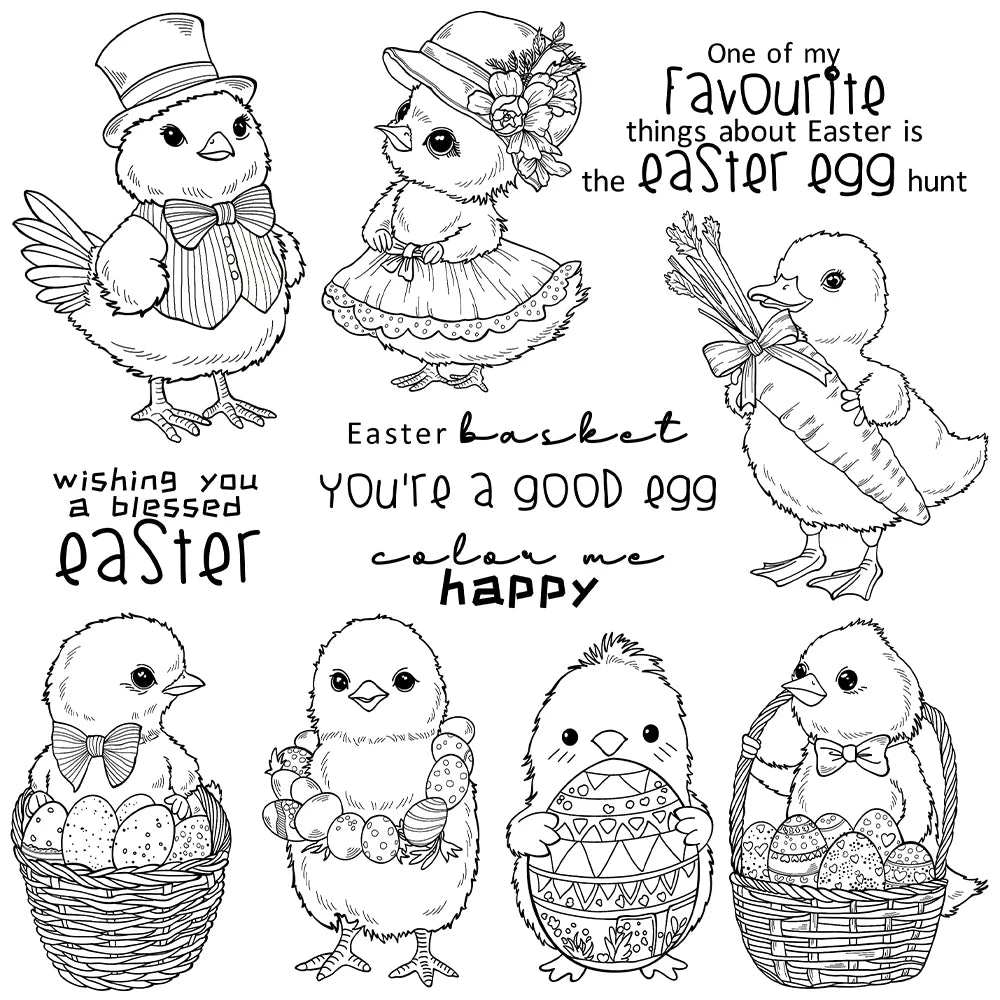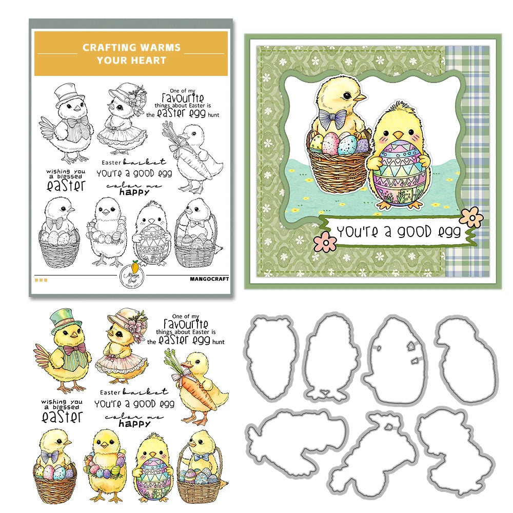 Mangocraft Happy Easter Eggs And Chicken Cutting Dies Clear Stamp DIY Scrapbooking Metal Dies Silicone Stamp For Cards Albums