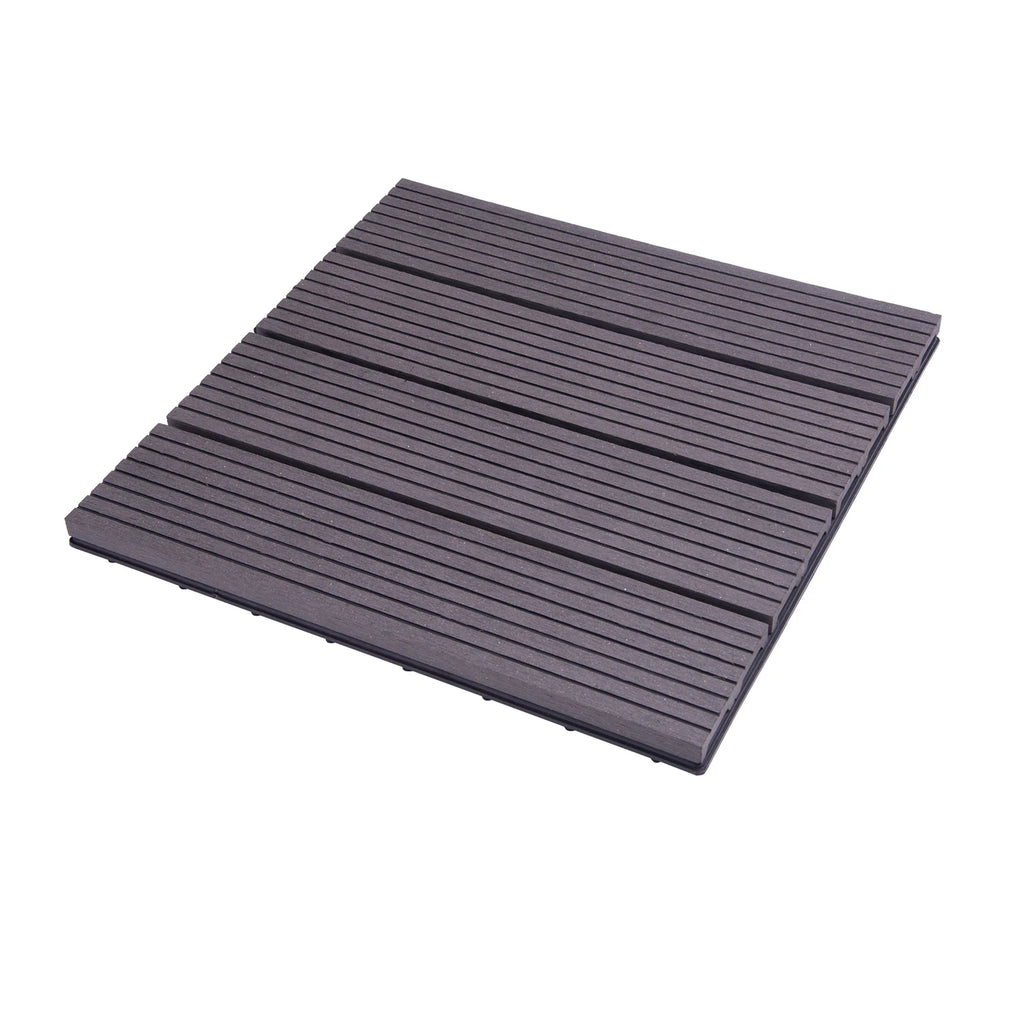 • MULTIPLE COMBINATION: includes 11 decking tiles, each measures 30 x 30 cm. The tiles can be combined with tiles in other colours, as well as stone click tiles or turf.