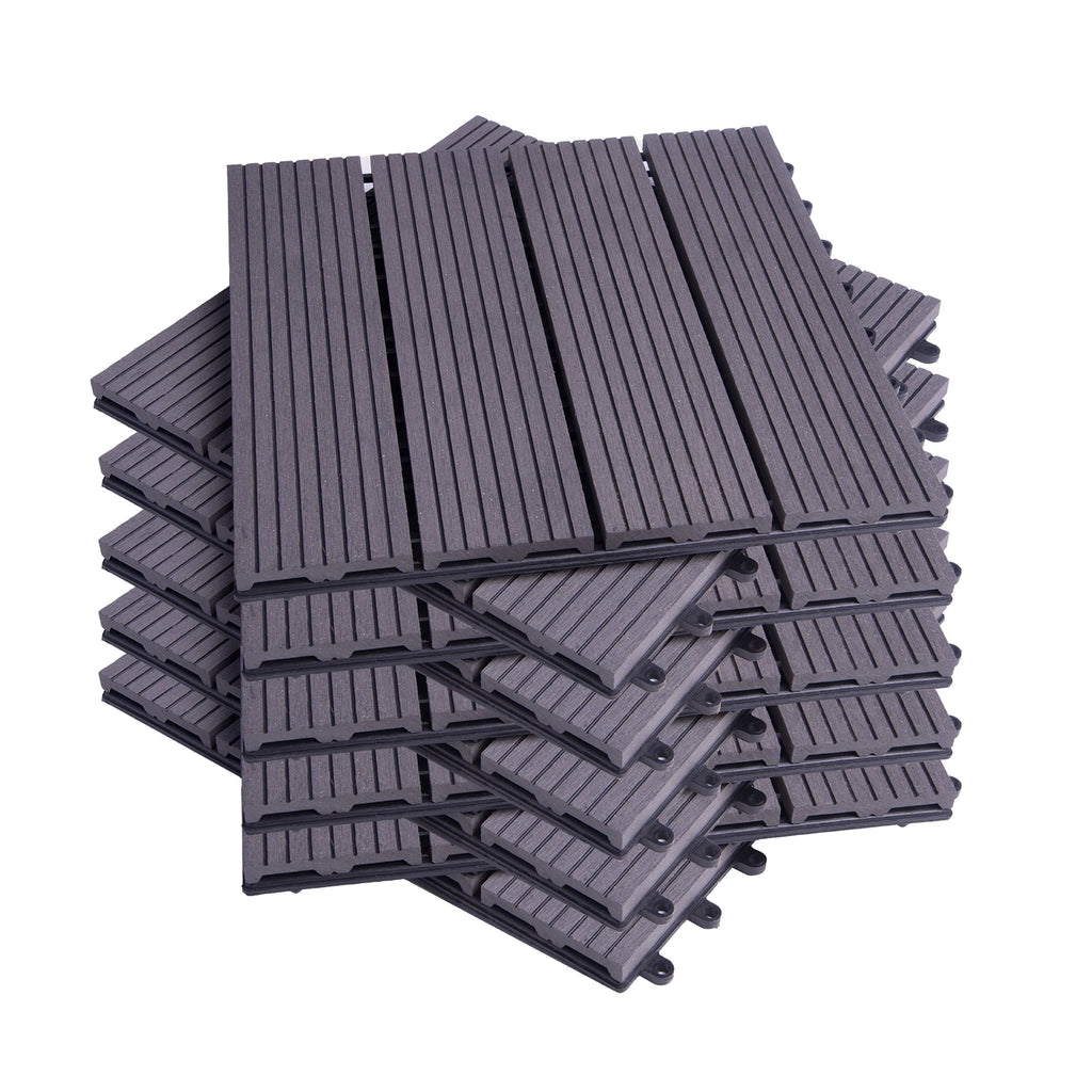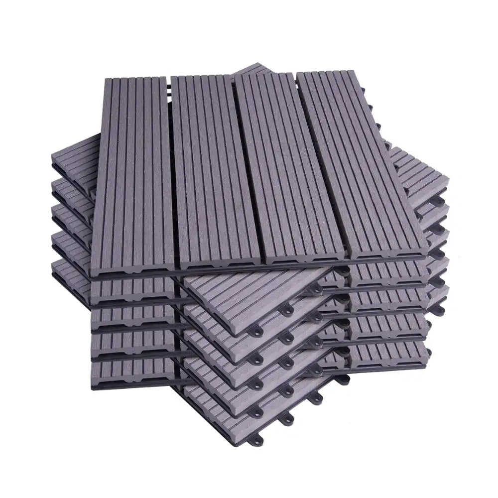 WPC Composite Garden Floor Boards Set of 11PCs Interlocking Wood Effect Terrace Tiles Flooring 30 x 30cm with Click System
