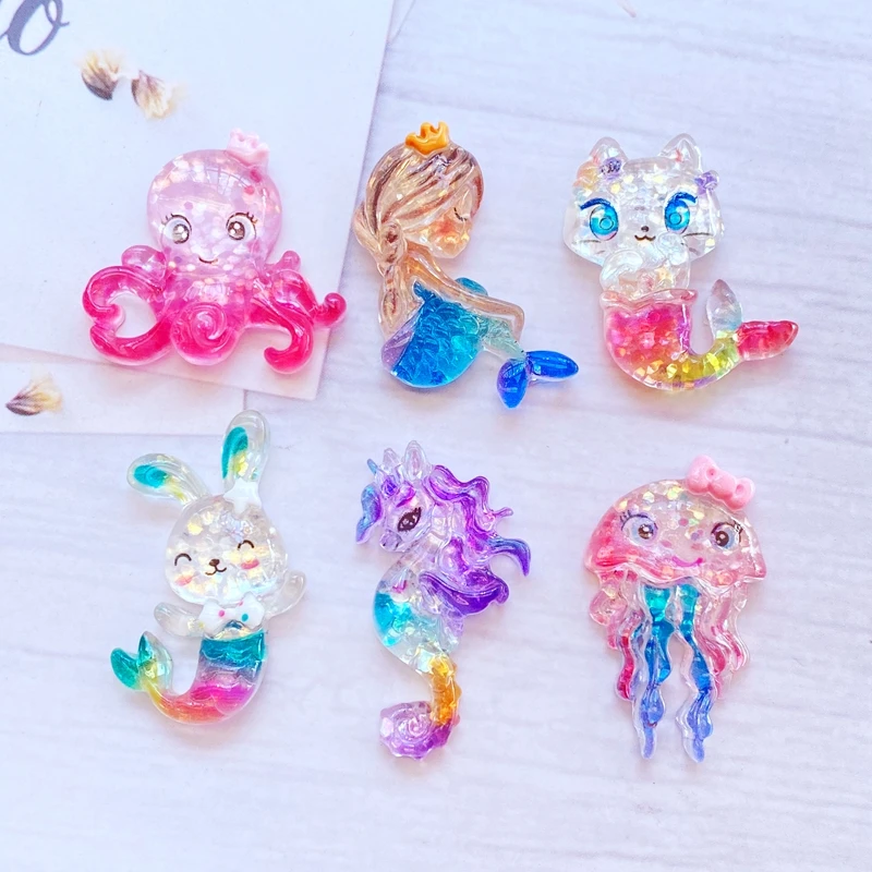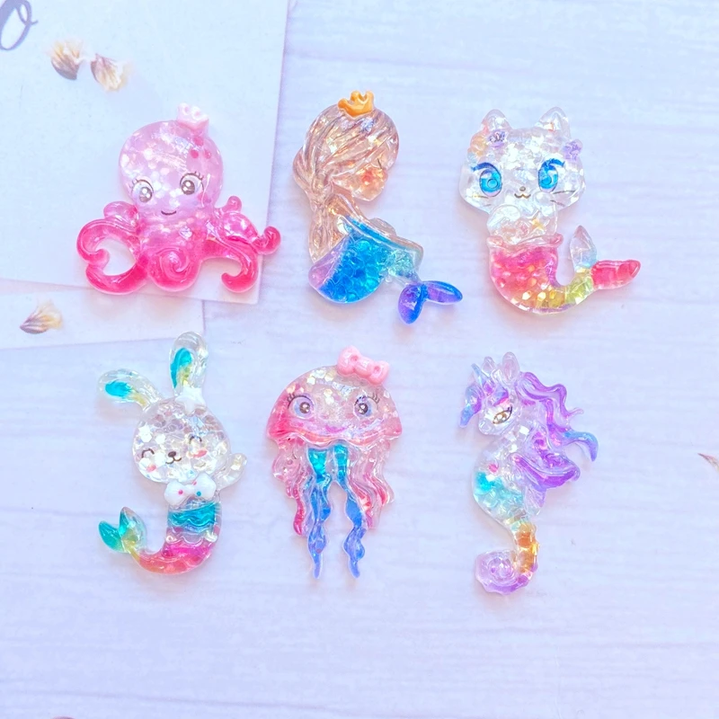 10Pcs New Mini Cute Cartoon Ocean Series Flat back Resin Cabochons Scrapbooking DIY Jewelry Craft Decoration Accessorie