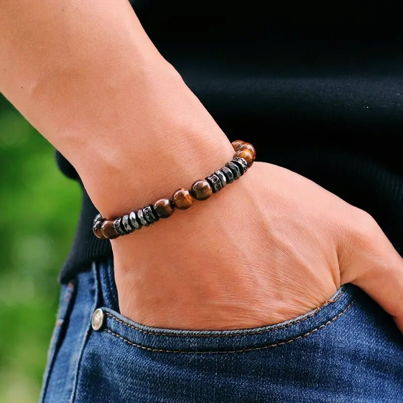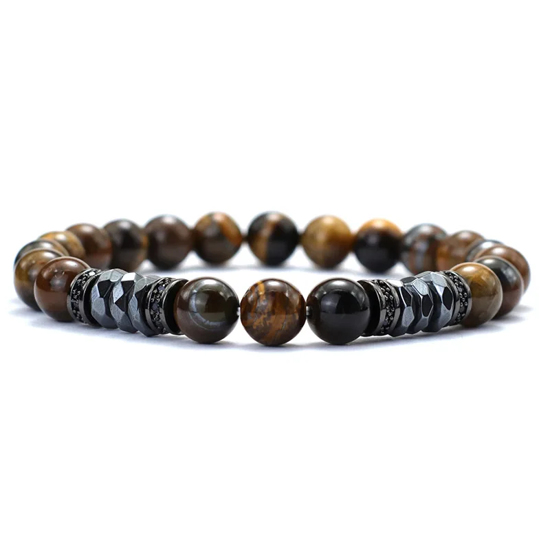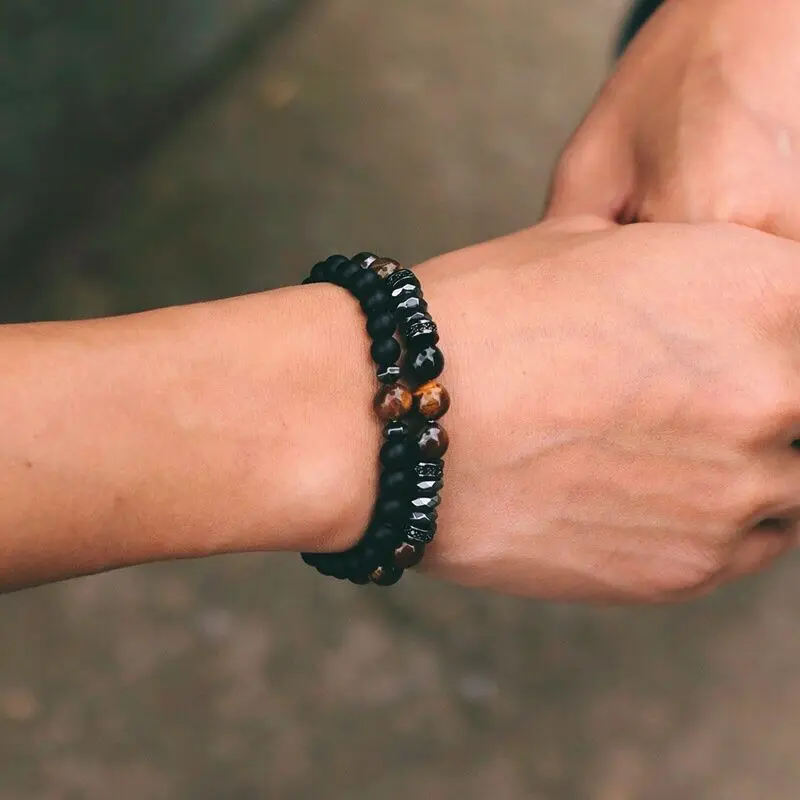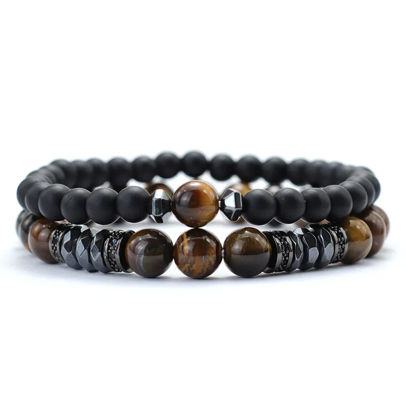 Hiphop Men Bracelet Set 2 Pieces High Quality Zirconia Braclet Natural Lapis Lazuli Lava Tiger Eyes Stone Braslet Gift For Him