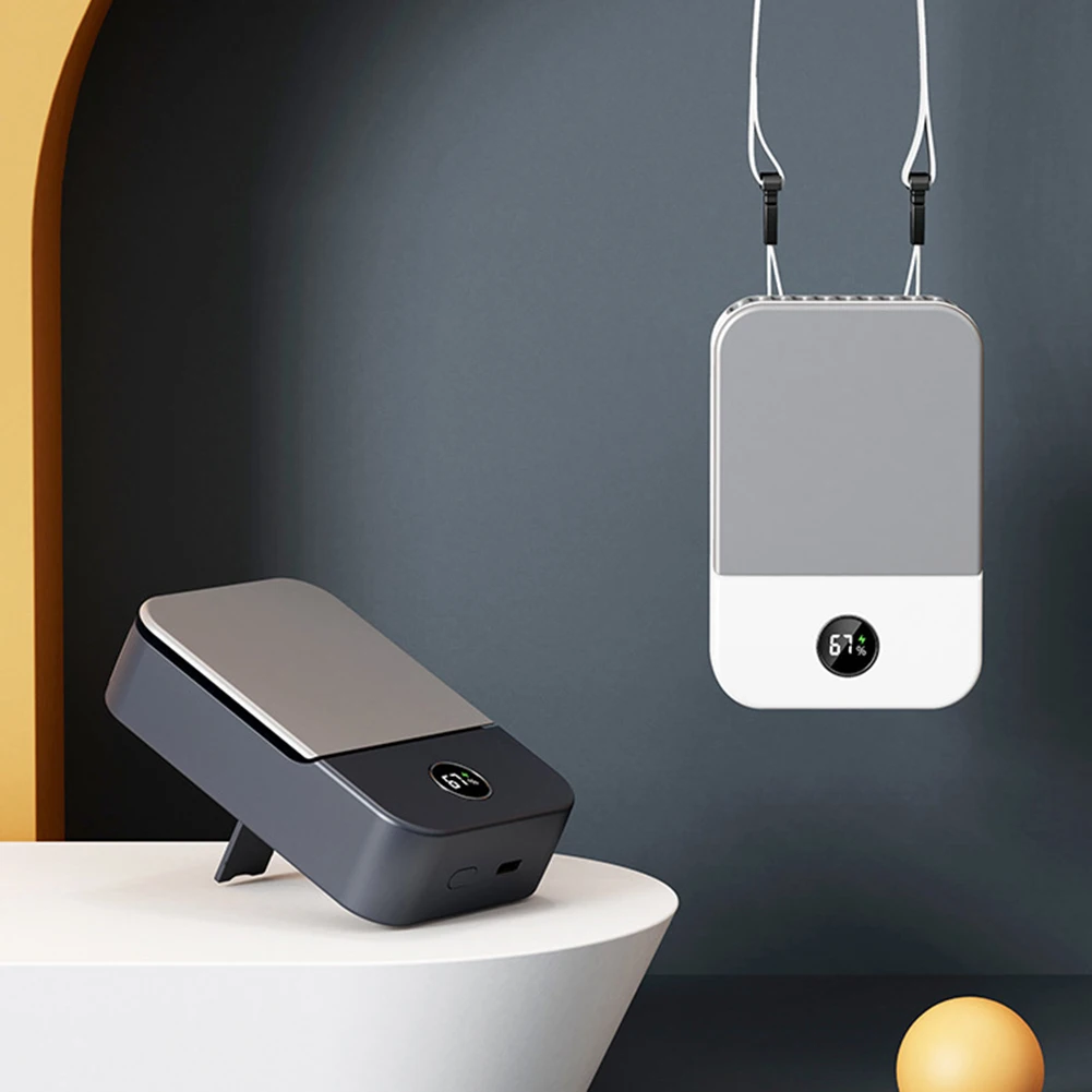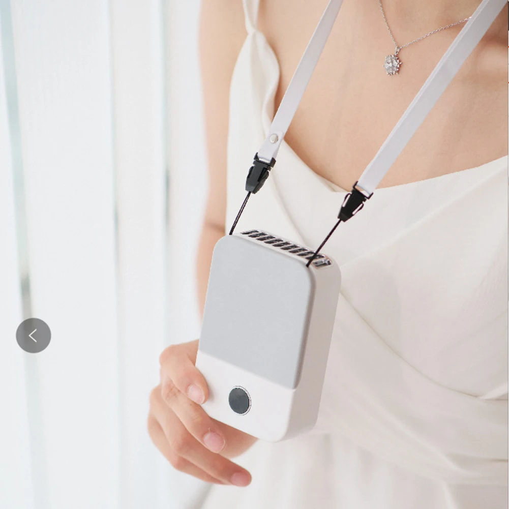 Mini Digital Display Hanging Neck Fan Portable USB Rechargeable 3 Speed Mute Creative Desktop Handheld Small Fans Outdoor Sports Travel Summer Air Cooler