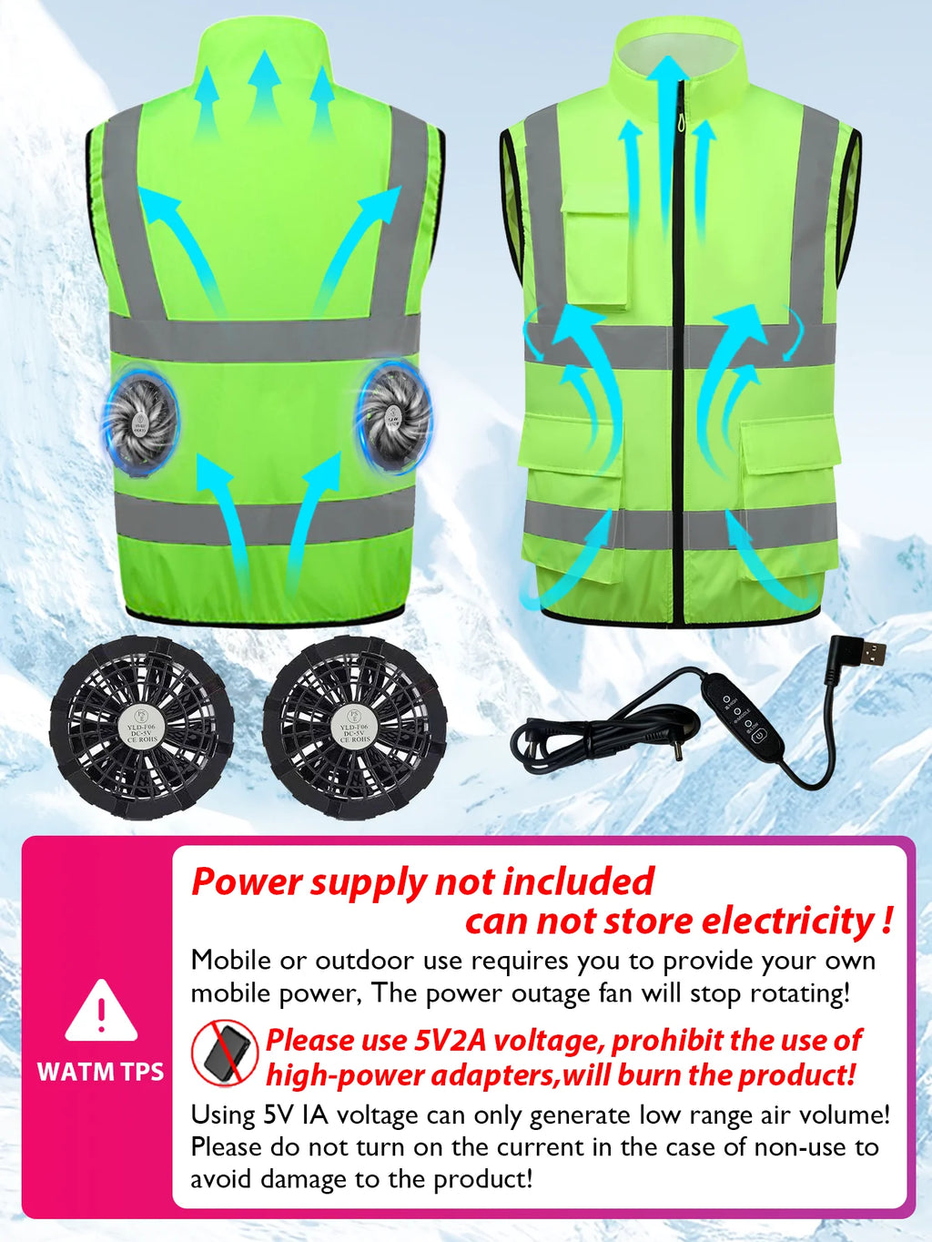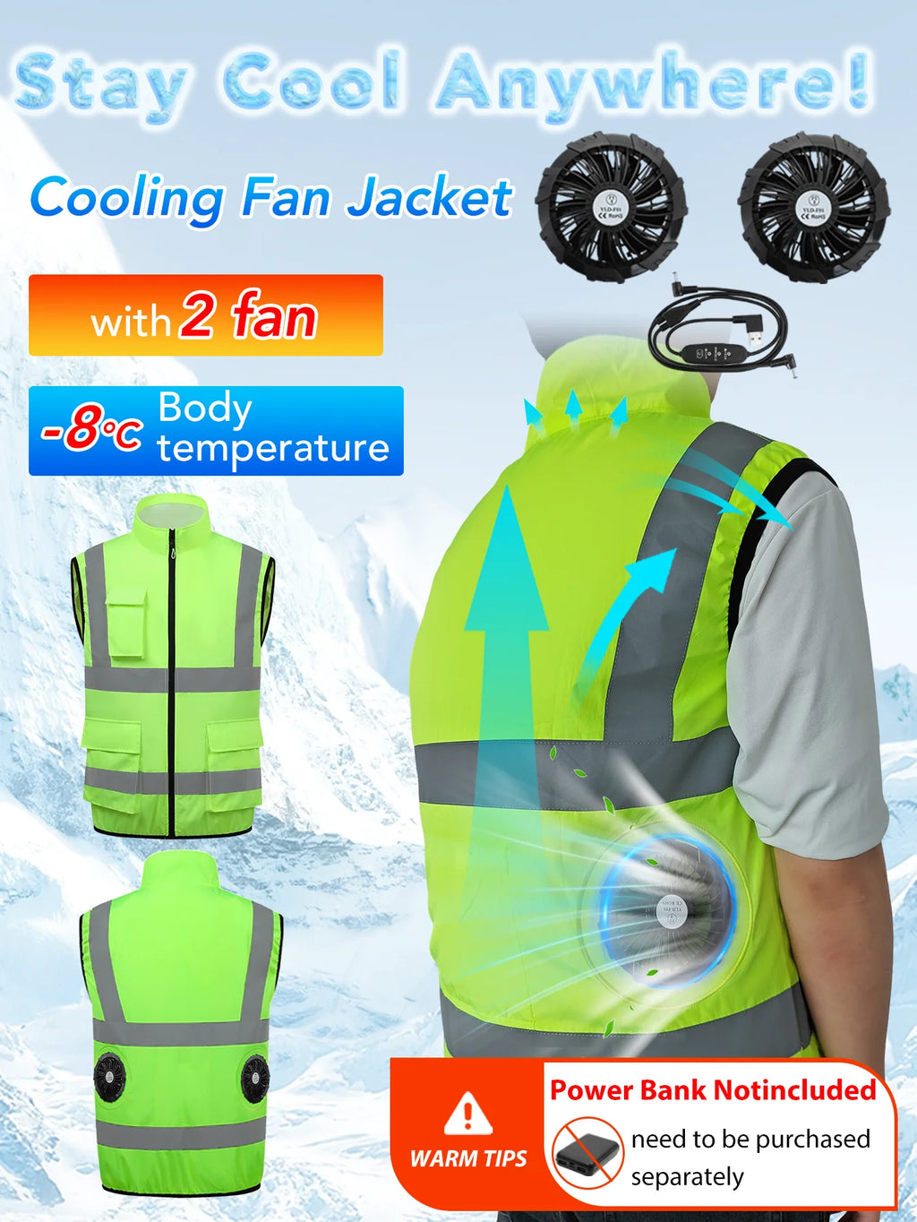 Fan Cooling suit includes 2 fans, 9 blades, 3-speed adjustment of wind speed,Vest for summer fishing trips (without power bank)
