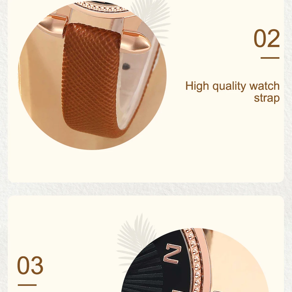 • Leather Band Material :The leather band material provides a comfortable fit and adds a touch of elegance to the overall design.