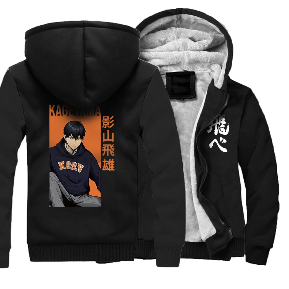 Anime japonés Haikyuu estampado Kageyame sudaderas con capucha para hombre ropa de calle 2021 invierno cálido sudaderas Harajuku abrigos chaqueta divertida
