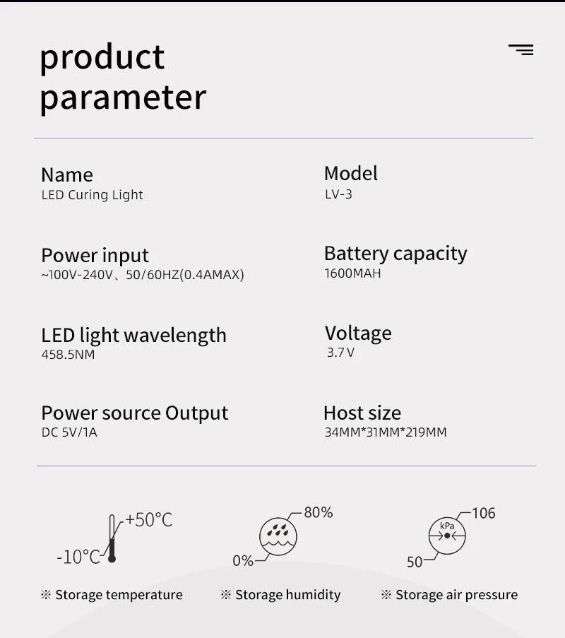 Longitud de onda de luz LED: 385nm ~ 515nm