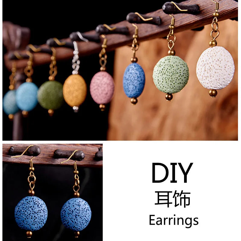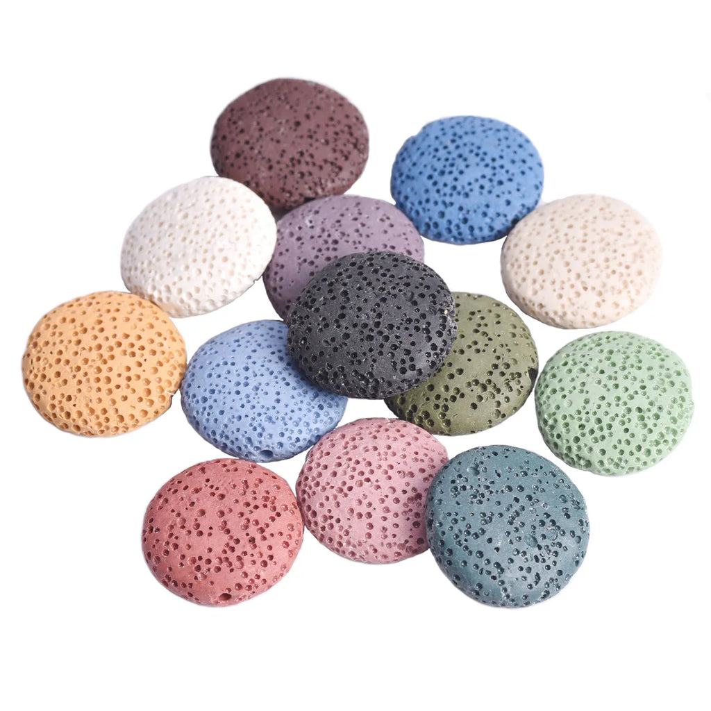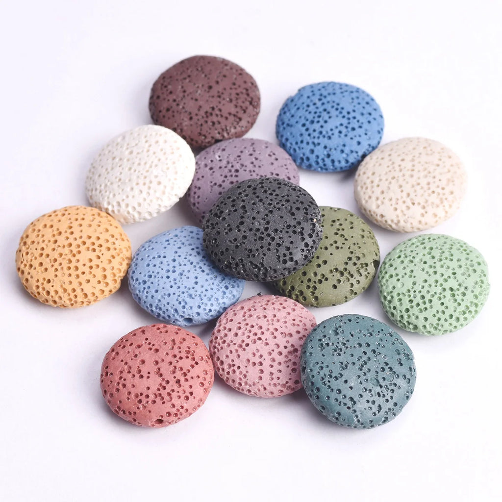 5pcs Natural Volcano Lava Stone Flat Round 20mm 27mm 32mm Loose Crafts Beads lot for Jewelry Making DIY Earring Findings